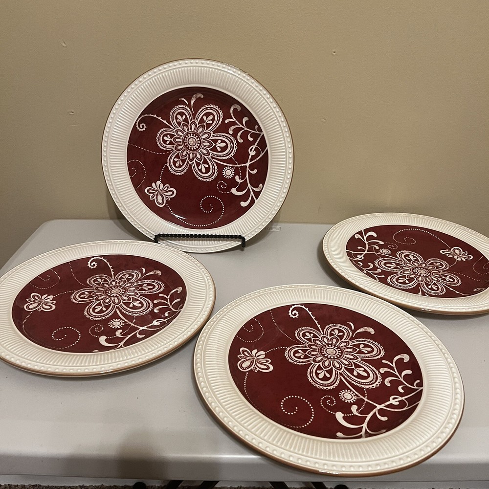 In excellent condition, short of one small blemish on the edge of one plate. This plate is the one standing upright in photos and you can see a close-up of the blemish in one of the pictures. From a smoke-free, pet free home. I am happy to combine shipping. I do have other pieces from this collection listed, should you need or want more.