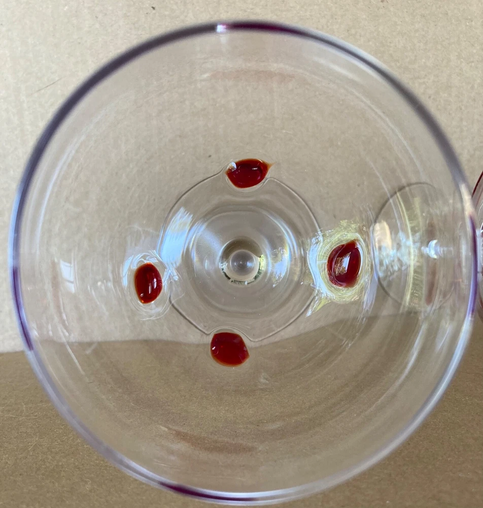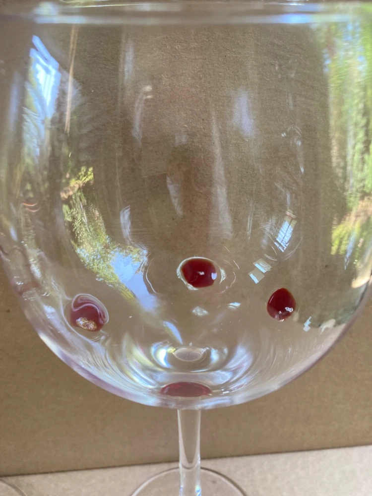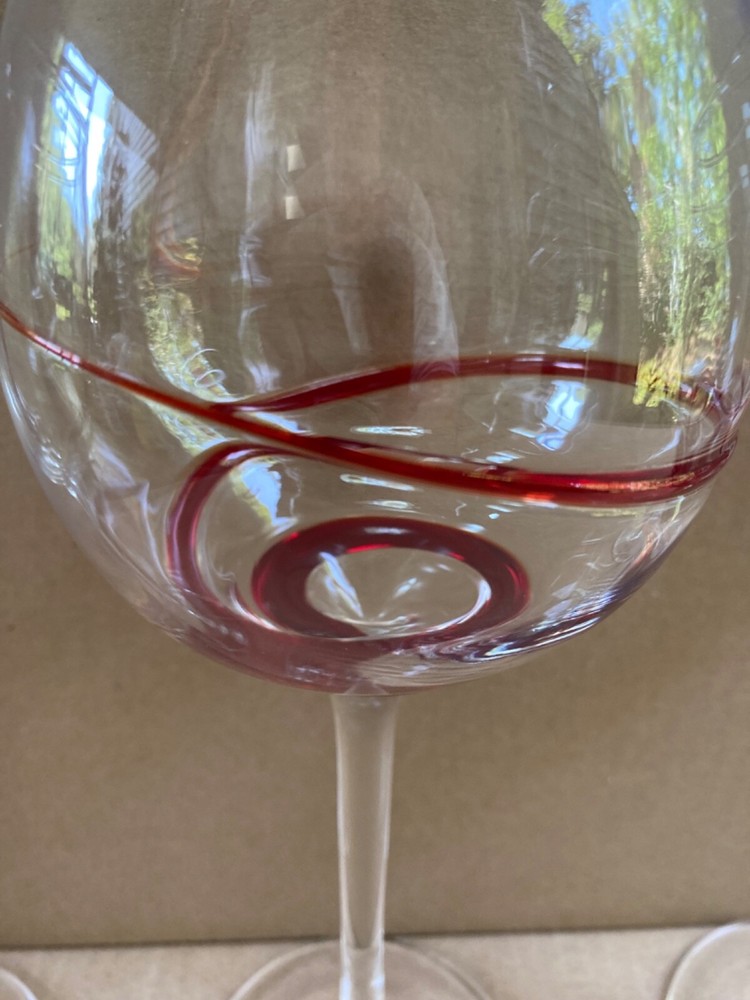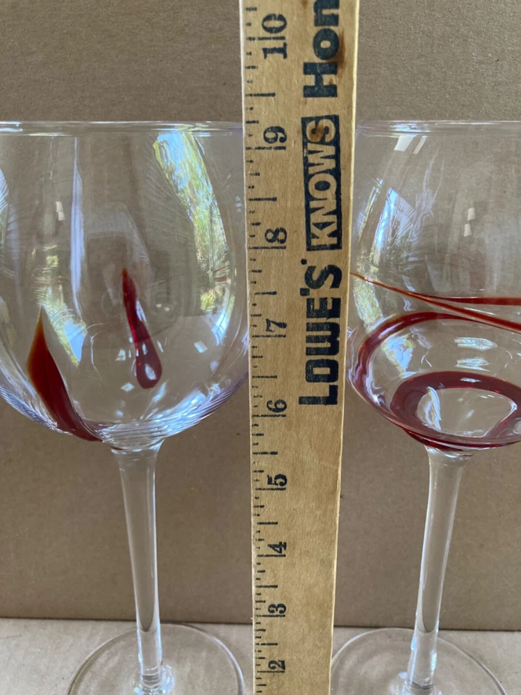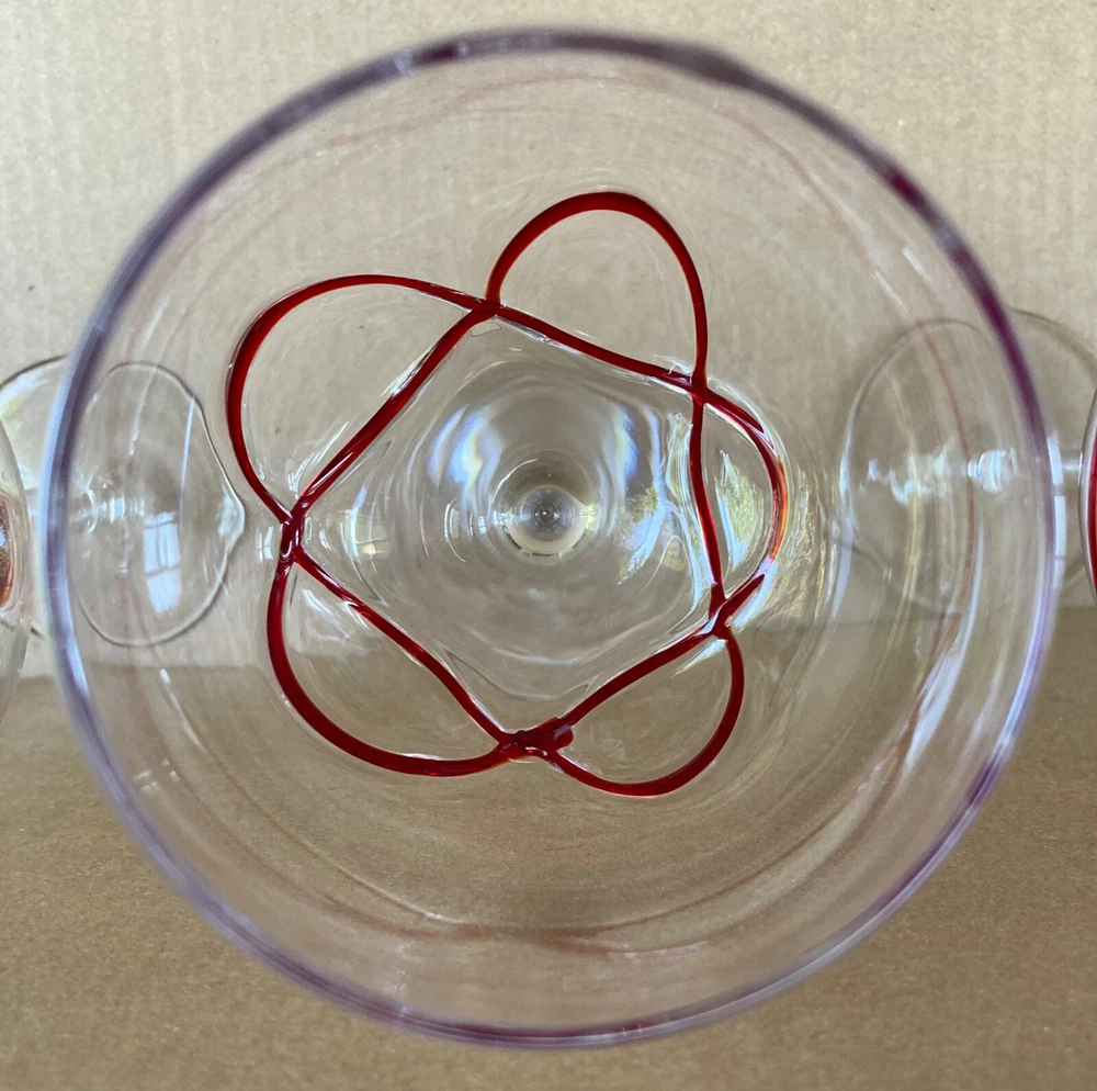 ** Pier 1 Imports ** ~ Set of 4 Wine Glasses ~ ~ Red Swirl / Dot Designs ~ ~ Holds 20oz Filled to the Top ~ ~ Each Glass is a Different Design ~ ~ No Chips, Cracks or Damage ~ ** $15.95 US Mailing Includes Delivery Tracking ** * Be Sure To Check My Other Listings For Other Hard to Find Items *