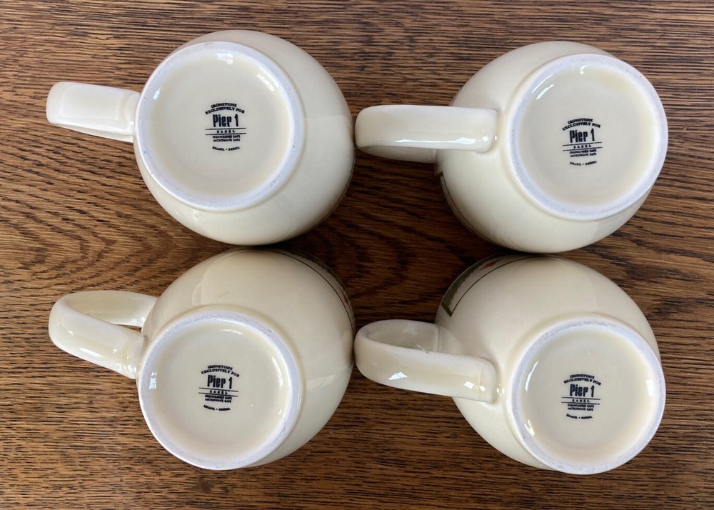 This is a Set of 4 Pier 1 SABEL Ironstone 12 oz. Coffee / Tea Mugs. They are in MINT / LIKE NEW condition with no chips, cracks, crazing, scratches, stains, or any other signs of use or wear. Comes from a smoke-free home and will be carefully packaged for shipping.