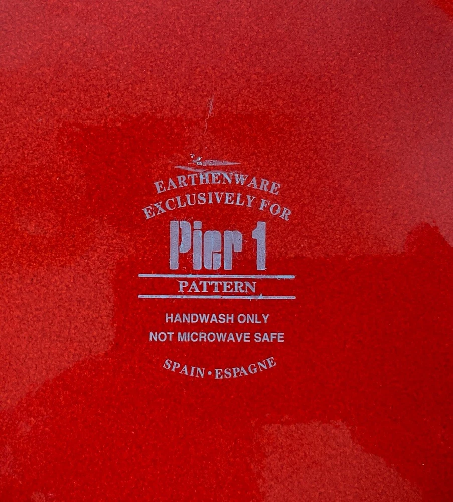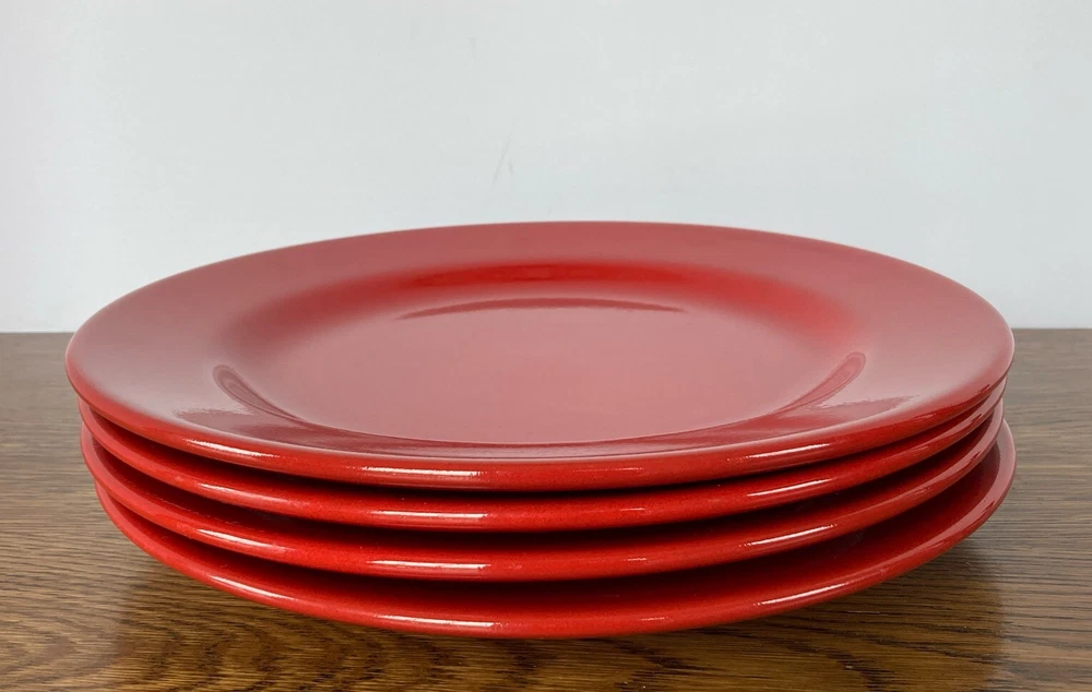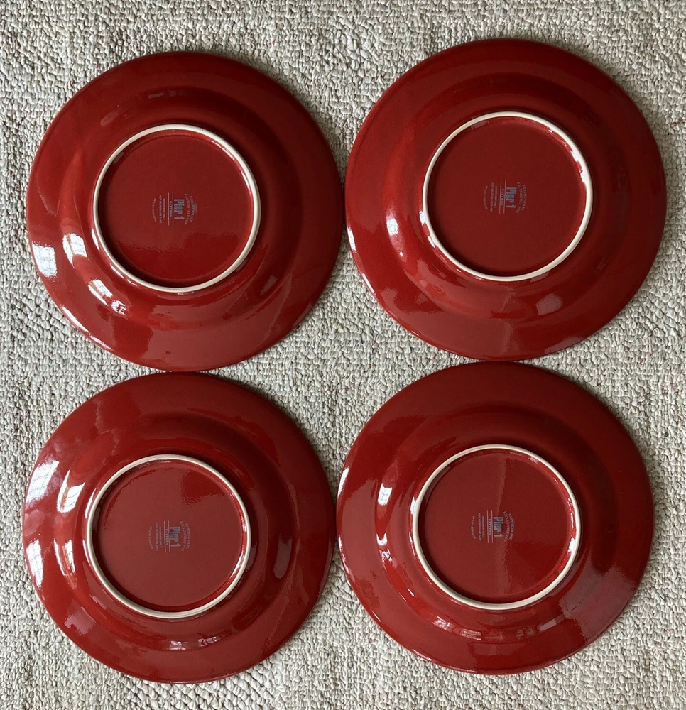 This is a Set of 4 Pier 1 Toscana Burgundy Earthenware 11” Dinner Plates Made in Spain. They have been lightly used and are in EXCELLENT condition with no chips, cracks, crazing, scratches, or stains. There are some minor utensil marks on each plate. Comes from a smoke-free home and will be carefully packaged for shipping.