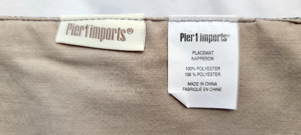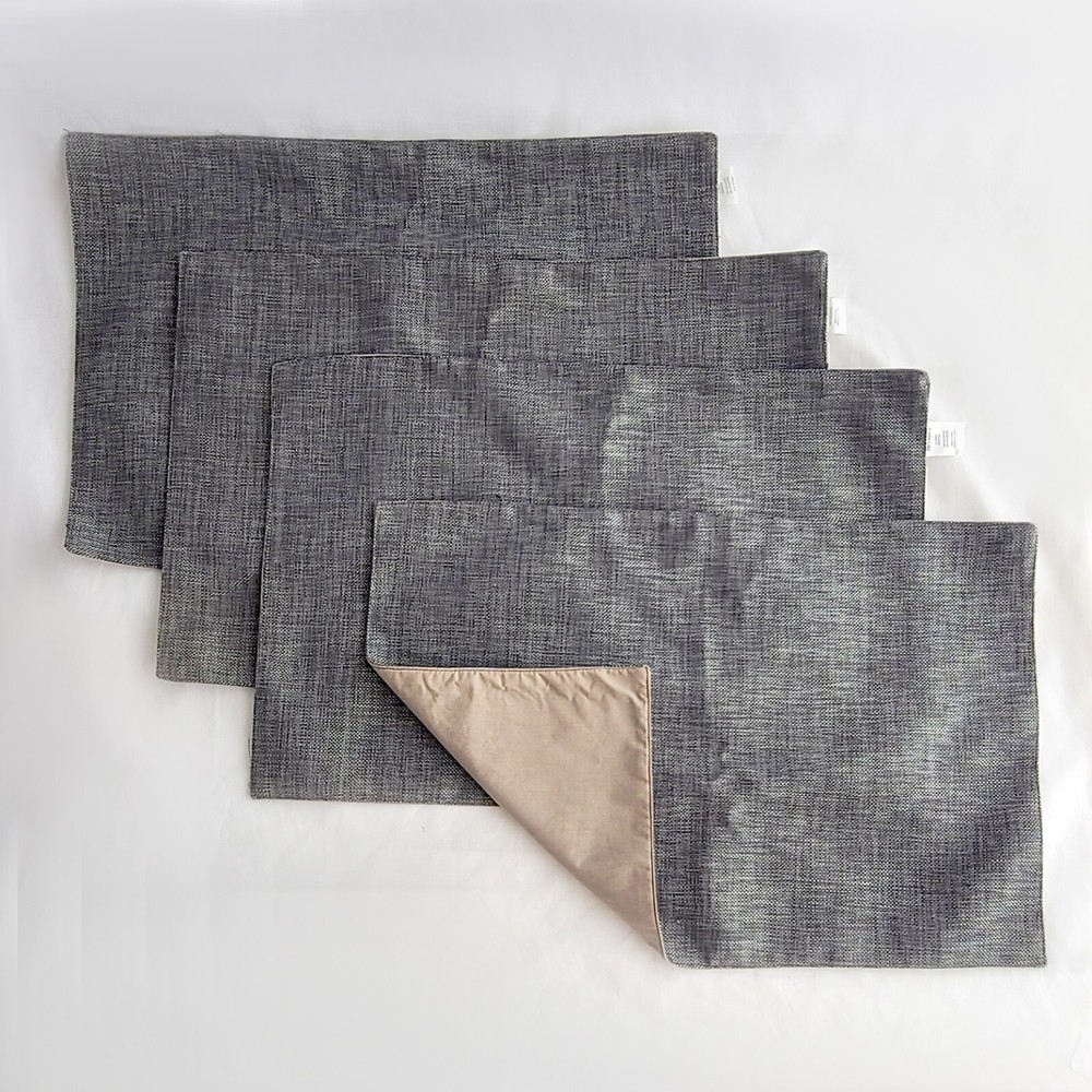 Set of 4 Pier One Placemats in Gray Woven Fabric 13 in. x 19 in. Pre-owned. Gently used. Very good condition. May have a few loose threads from manufacturing. Please see all the pictures. Selling As Is. Contemporary Pier One brand placemats, Model 3606101. Set of 4 gray and silver woven place mats Placemats are about 19" x 13" 100% Polyester placemat with fabric facing on the bottom Spot clean only Accessories seen in the pictures are NOT included. They are only for example and size reference. By purchasing this listing, you will receive 4 placemats only! Thanks for looking! PAYMENTS, SHIPPING, AND RETURNS - All items are sold AS IS. Descriptions are to the best of my knowledge. I try to write as detailed as possible, but please ask if I’ve left out a point that’s important to you. - Anything visible in the pictures is considered a part of the description. - NO Returns. Please be sure you want this item and purchase accordingly. 30 days refers to damages in shipping. I pack well and have never had an issue. - BUY IT NOW items require immediate payment at checkout. - If a BEST OFFER is accepted, payment is appreciated within 1 day . - If an item is sold at Auction to a Winning Bidder, payment is appreciated within 2 days . - NON-PAID items will be reported to the marketplace. - Verified, US-based payment methods only. - Residents of most states may be subject to the marketplace adding sales tax in accordance with their policies. The seller does not receive any of the sales tax. - Once payment is received, I ship promptly by USPS (FedEx or UPS as appropriate) . - I only ship to the address registered with the buyer’s account. No third-party shipping. - Shipping costs are calculated for each item. I list the most economical shipping class appropriate for each item. Postage is auto-calculated; I don’t add extra handling charges. Items that are sent Priority Mail have only the insurance included by the USPS. - To combine shipping costs for multiple items, you must request an Invoice BEFORE you pay. NO partial refunds on shipping charges. - Any additional insurance or handling requests must be made and paid for by the buyer. - Some items may be listed with the offer of Free Shipping. Any free options will be the most economical, including the use of Media Mail for books, DVDs, CDs, VHS tapes, or other qualifying media. - Please allow additional time for the post office to accept the item and put it in the tracking system if the purchase is made on weekends or holidays. - All items ship with tracking information. An item is considered ‘Received’ after tracking shows it ‘Delivered’. - Items ship only within the United States. Sorry, no APO/FPO. NO International shipping, please . ABOUT ME Your positive feedback is appreciated and reciprocated. Since 2007, I’ve processed many more successful transactions than the feedback score may indicate because not everyone leaves feedback. I know you’re bombarded with requests to “rate” everything these days, but please take a moment to support independent sellers on the marketplace sites. I’m just a person, n ot a 24/7 fulfillment robot, but I do check my account often for sales, offers, and questions. For a private seller, transactions are processed pretty quickly because I enjoy getting the items packed up and off to the buyer. The items listed for sale are clean, personal items from a smoke-free, pet-friendly home. I'm an honest and reasonable person with some things to sell simply because I don't need them. Perhaps you do. My goal is to provide you with 100% satisfaction! Happy shopping and thanks for looking. CONTACT ME For all questions or issues please Contact Me! Thank you.