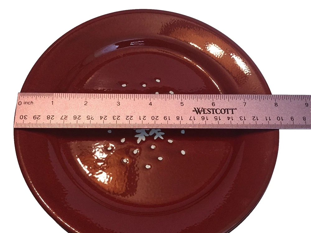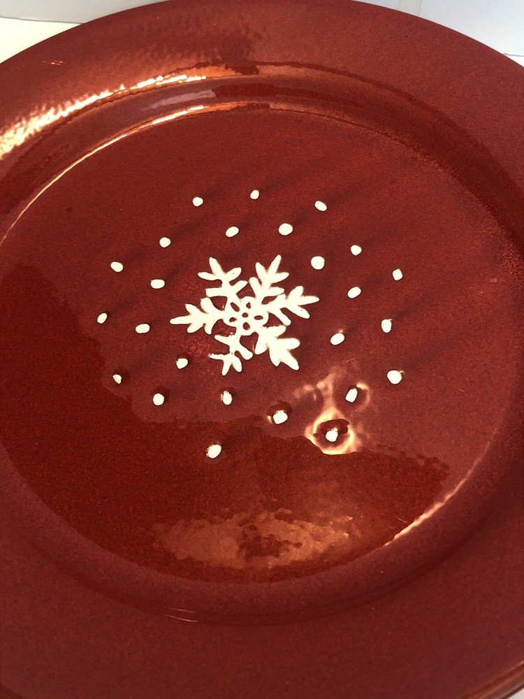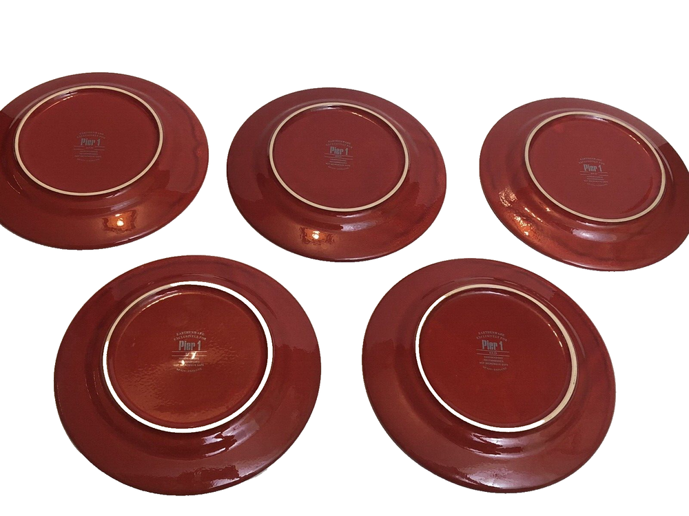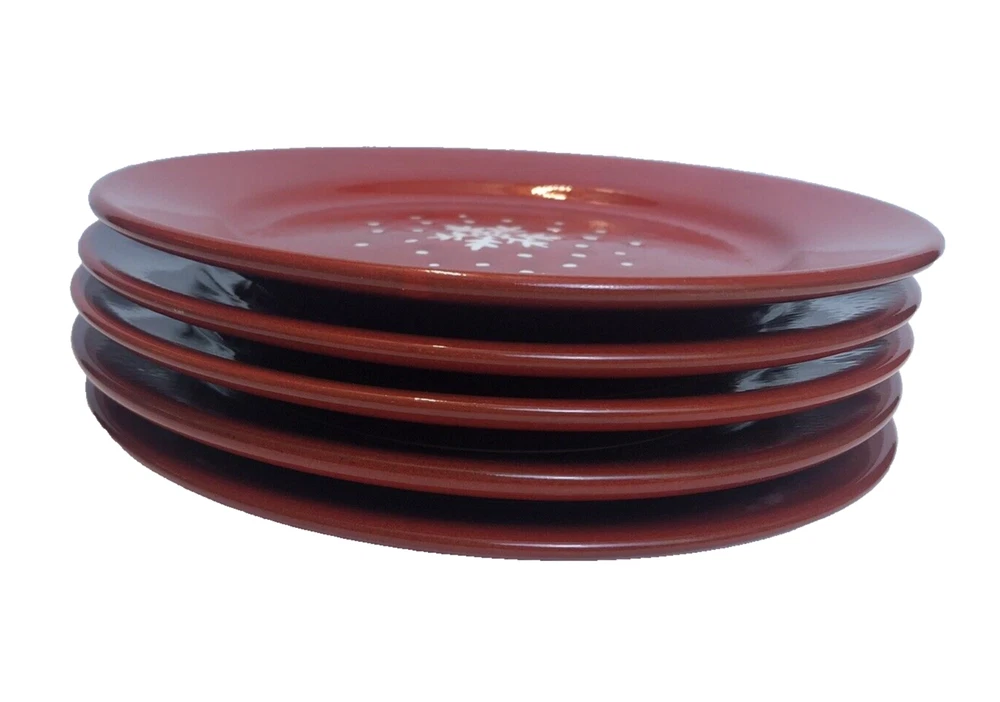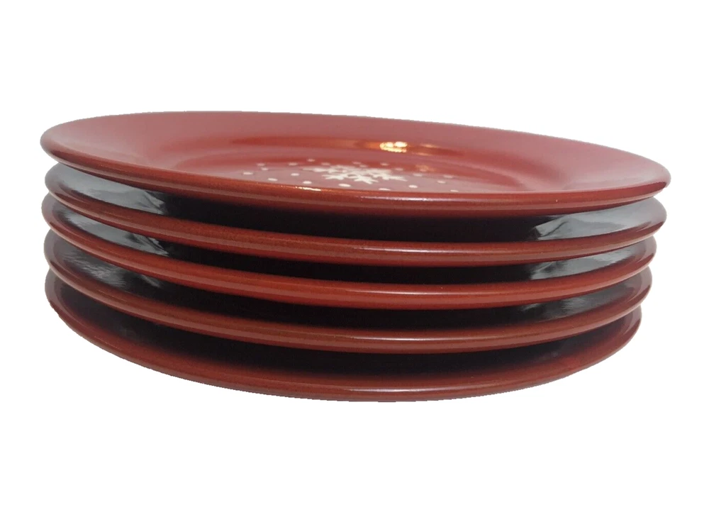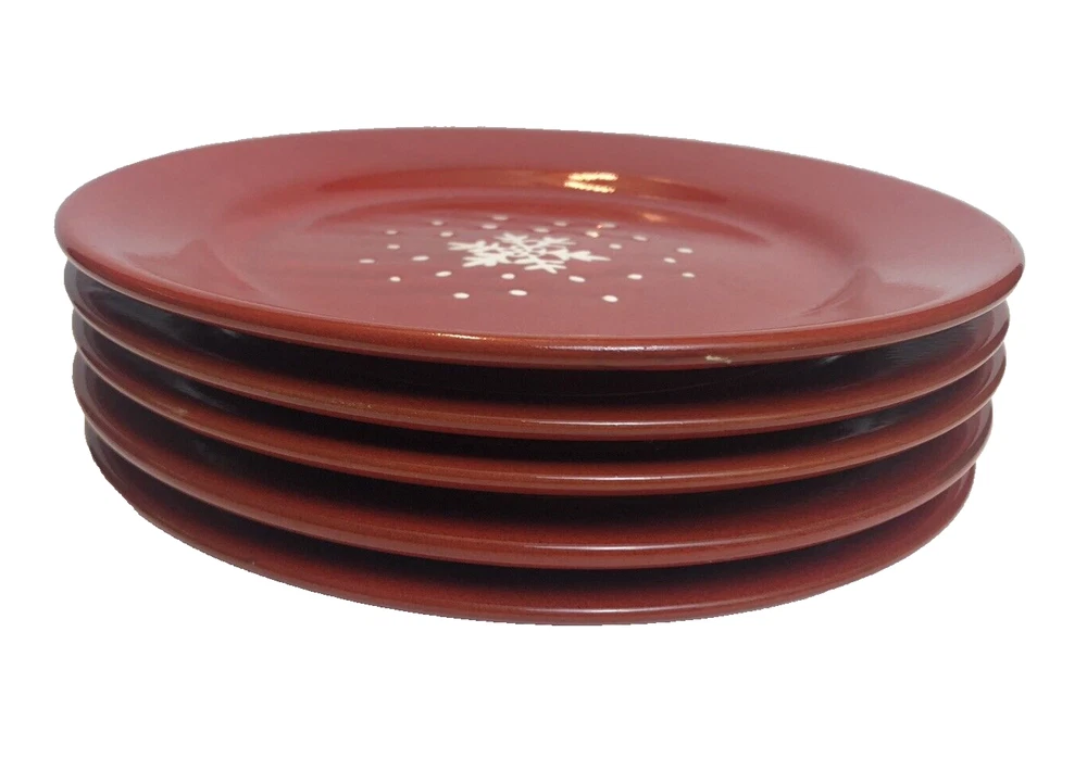 Set of 5 - Pier 1 Imports Red Snowflake/Dots Salad Plates 8" Earthenware Spain Good condition with minimal signs of wear/use. There appears to be a couple of flaws in the finish as shown in the photos. See photos for condition.