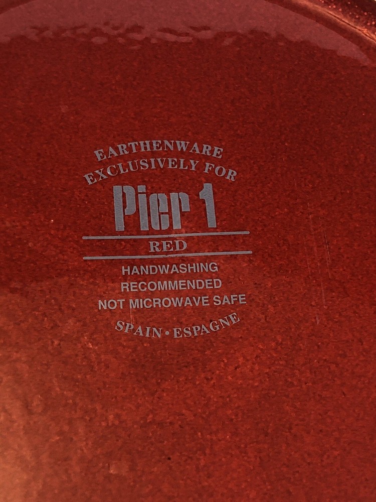 Set of 5 - Pier 1 Imports Red Snowflake/Dots Salad Plates 8" Earthenware Spain Good condition with minimal signs of wear/use. There appears to be a couple of flaws in the finish as shown in the photos...
