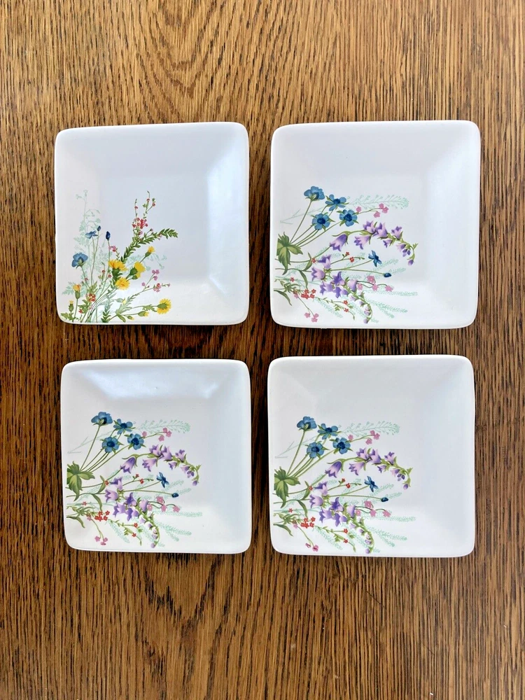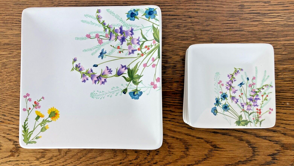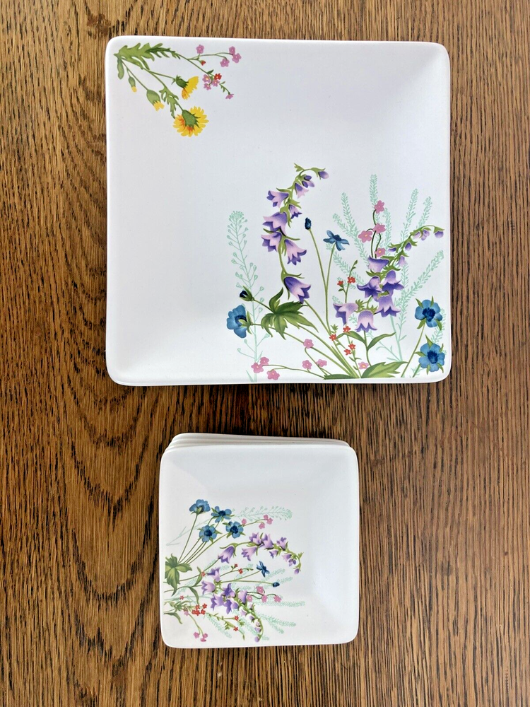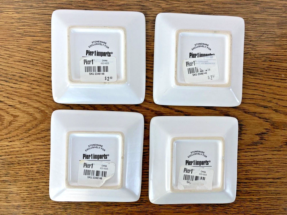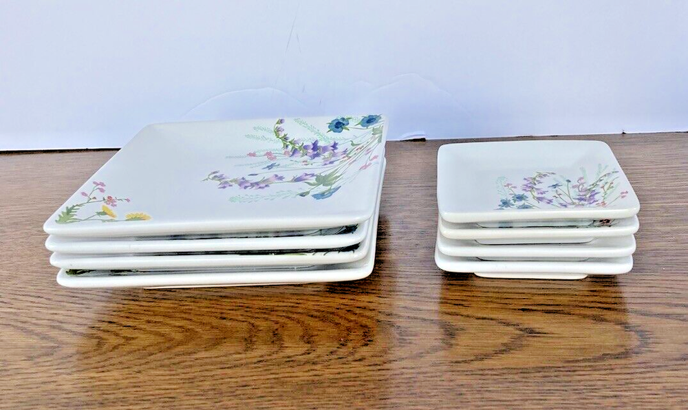 This is a Set of 8 Pier 1 Spring Flowers 6" & 3-1/2" Square Bread/Appetizer and Dipping Plates. There are four 6" square Bread/Appetizer Plates and four 3-1/2" Dipping Plates. They are all NEW WITH TAGS. Comes from a smoke-free environment and will be carefully packaged for shipping.