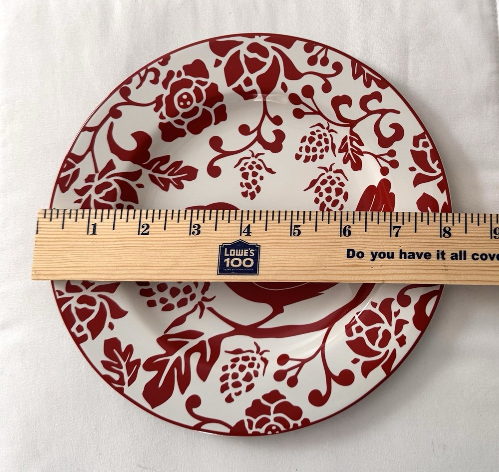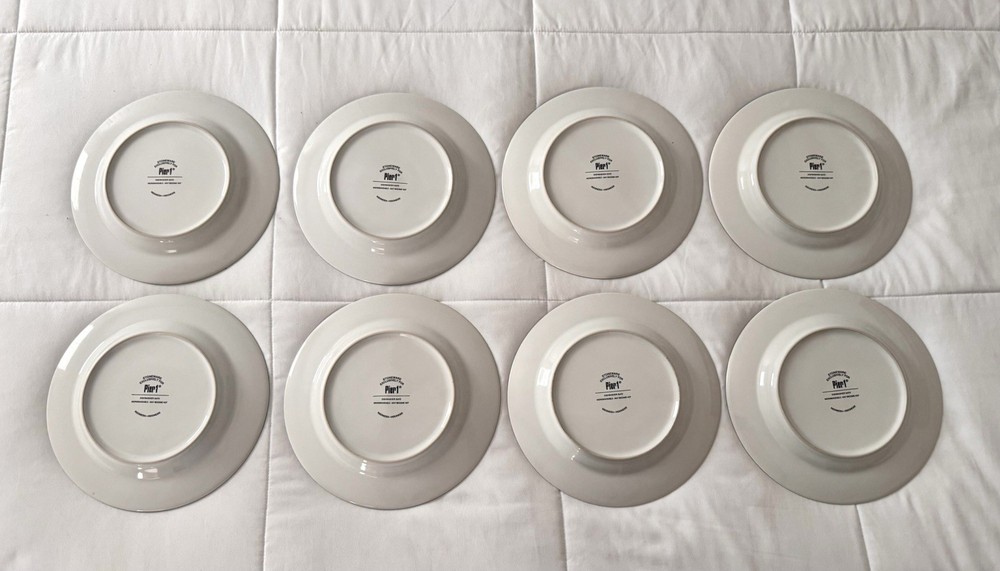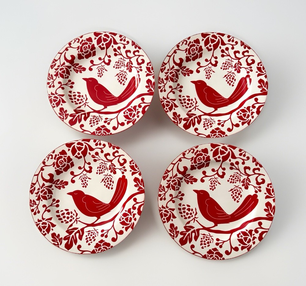 Set of 8 Pier 1 Stoneware Red Bird Flowers Branches Salad Luncheon Plates 8.25” Excellent condition with no chips, cracks or utensil scratches.