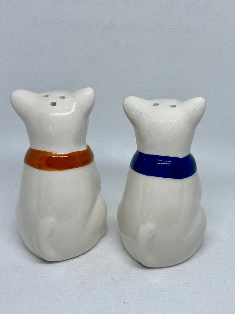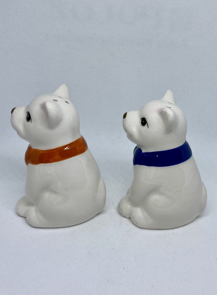 Set of White Ceramic Bulldogs Sporting Red & Blue Bowties Salt & Pepper Shakers Add some character to your dining table with this set of White Ceramic Bulldog Salt & Pepper Shakers Sporting Red & Blue Bowties from Mainstays. The small size of each shaker is perfect for intimate gatherings and the hand wash only feature makes it easy to clean after use. These salt and pepper shakers are made of ceramic and come in a set of two. The shakers have a unique bulldog design that is sure to impress your guests and make your food taste even better. Get your hands on this set now and add a little fun to your next meal! They each measure: 3.5"H x 2"W x 2.5"D. The dog with the blue bowtie does have some crackling. Please see all photos for all the details. OUR POLICY: Please read descriptions carefully. We try to describe everything in as much detail as possible, but if you still have questions, please don't hesitate to ask. We will be more than happy to answer your questions and provide you with additional pictures if necessary. We try to describe and photograph everything; however, if there is an issue with your purchase, PLEASE contact us to resolve any issues, questions or concerns you may have and we will work with you to quickly resolve the issue. To ensure a positive shopping experience for all of our customers, if we identify unreasonable, problematic transactions, we may restrict or refuse future transactions from such customers. We guarantee 100% satisfaction. We will gladly accept returns under the following conditions: Contact us directly by selecting the ‘CONTACT BUYER’ option. If you open a return request or leave negative feedback before giving us the opportunity to resolve the problem, we assume our transaction and correspondence as closed. Please follow through with your return request with eBay. We abide by eBay’s rules and regulations for returns and if they are met, you will be refunded. Buy with confidence and rest assured that you are dealing with an experienced store whose #1 priority is customer satisfaction. We list new items continuously, so add us to your favorites and check back often as you never know what you'll find here. Look around in our store as we have a huge selection of fragrances, skincare, makeup and other beauty products, as well as many unique and vintage items.