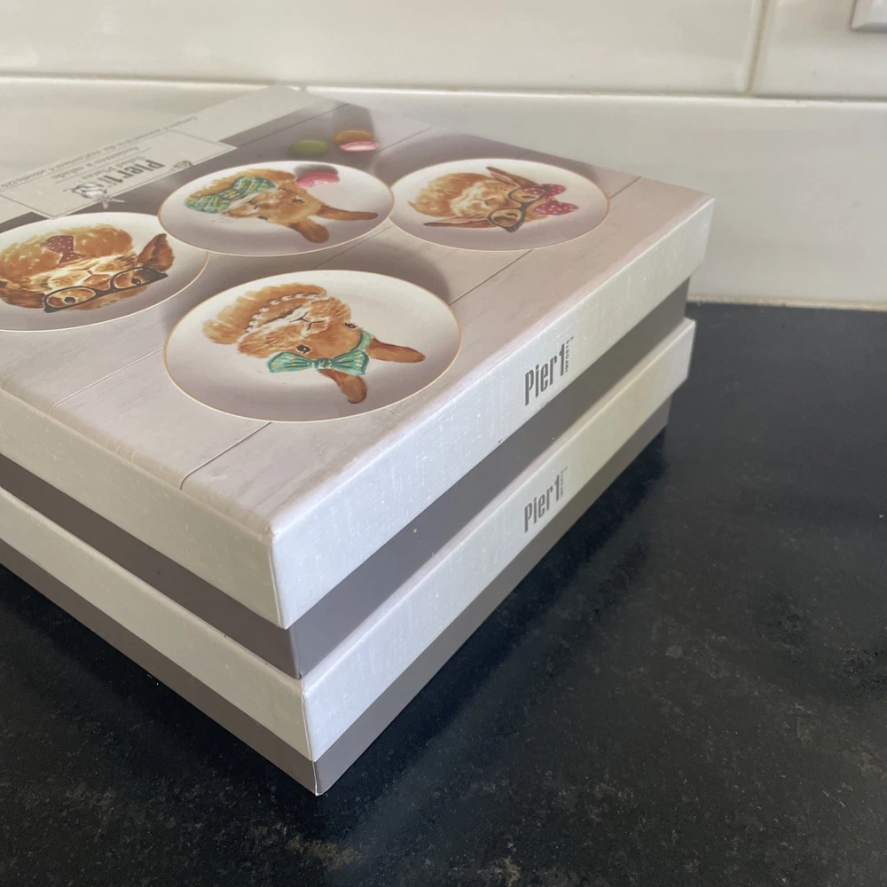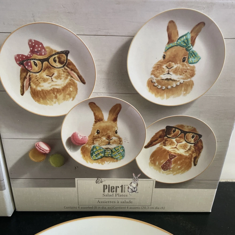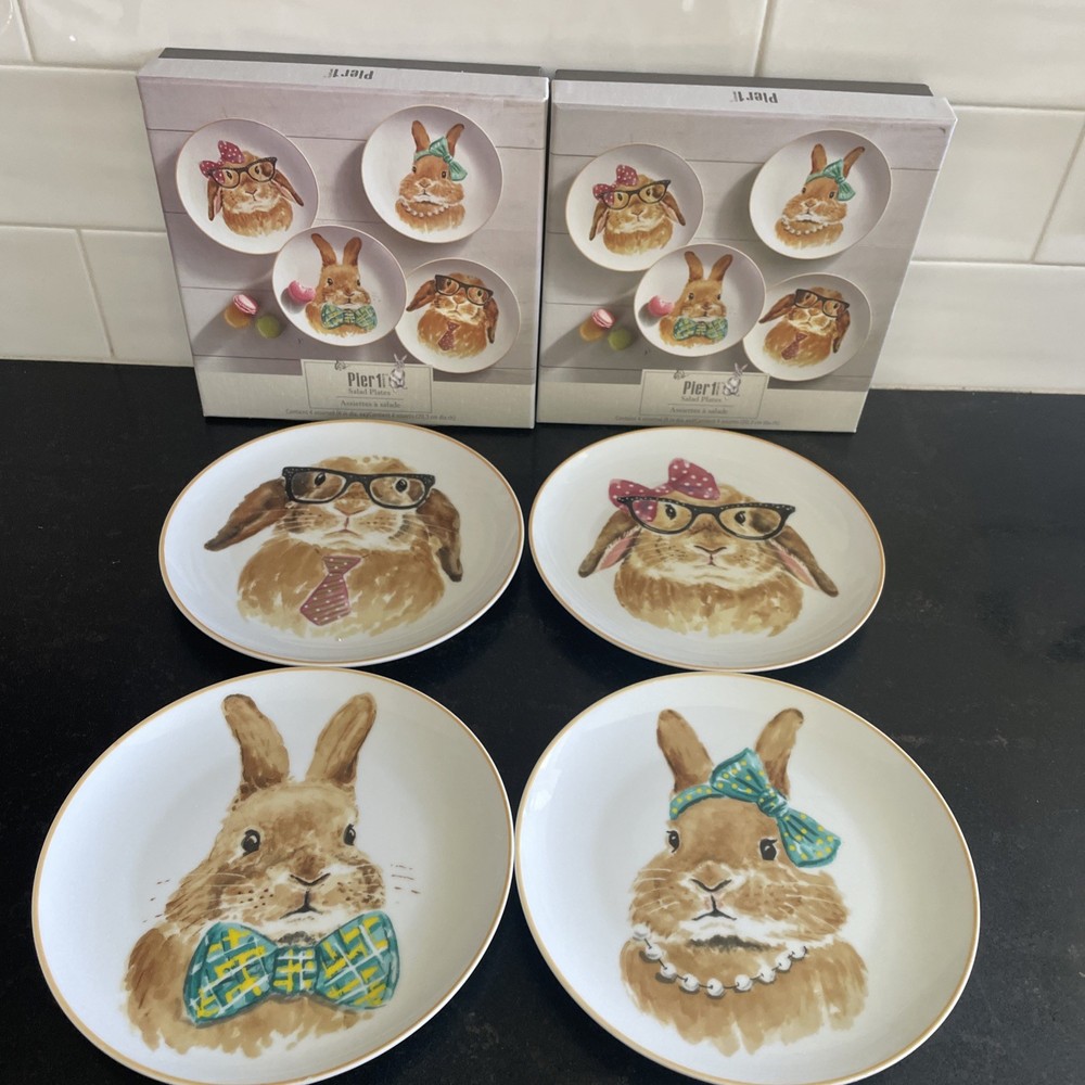 Pier 1 EIGHT (8) Two boxed sets of four Easter Rabbits Bunnies 8" Salad Dessert / Plates EXCELLENT! Appear to have been barely used SAME DAY Shipping!