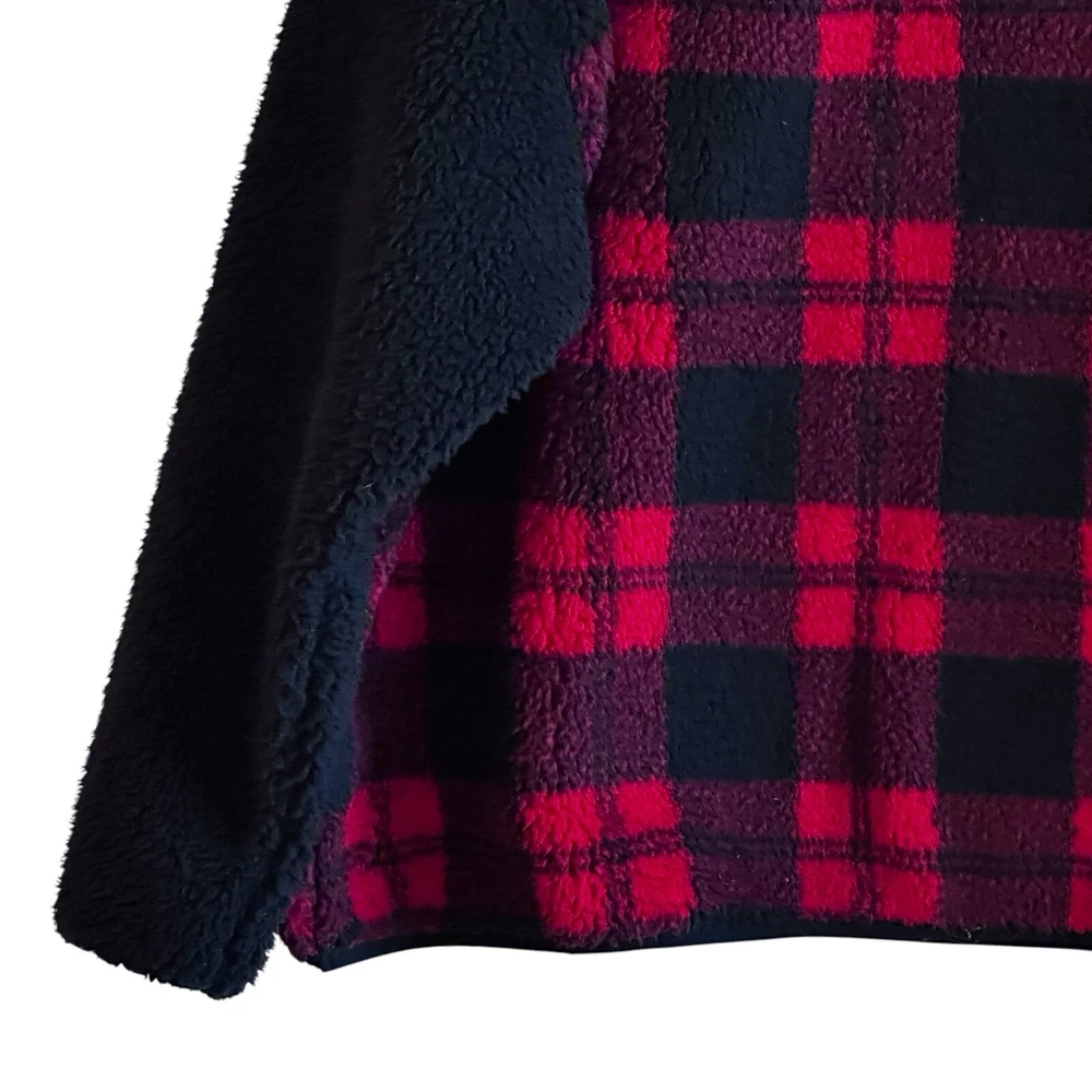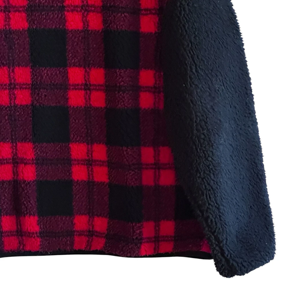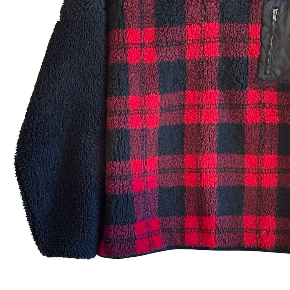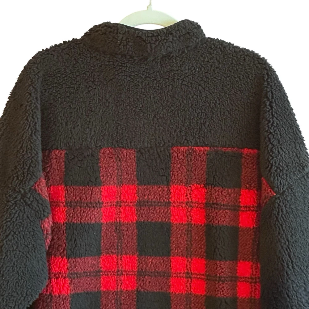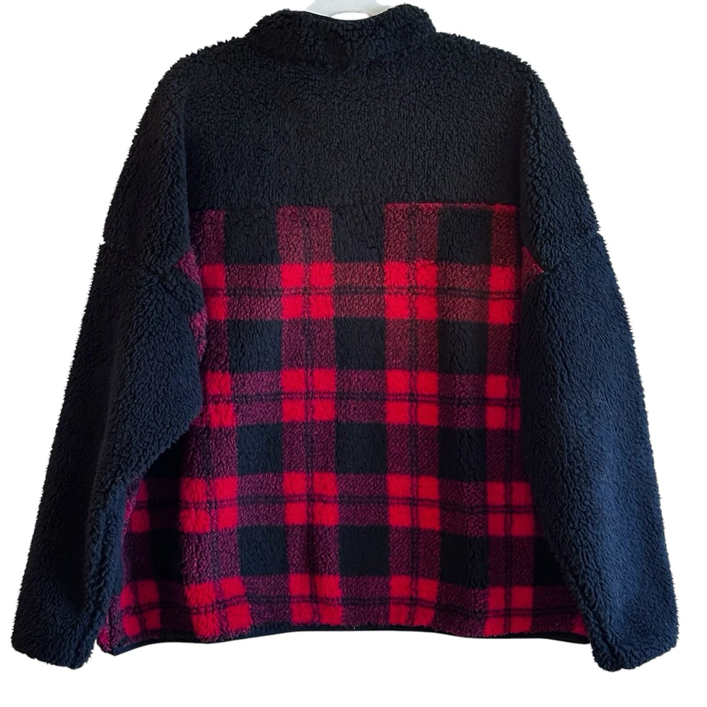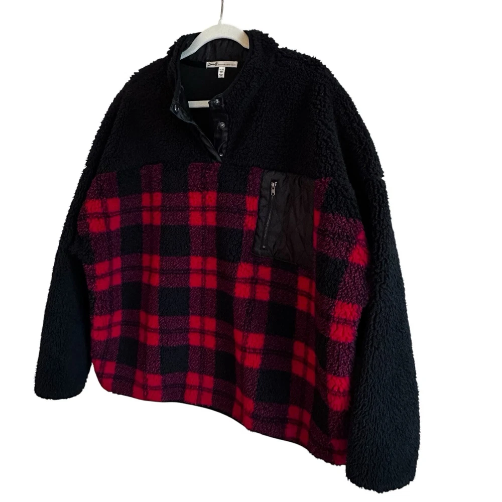 Seven Red and Black Plaid Tartan Sherpa Fleece Pullover Sweatshirt. Size: XXL Approximate measurements: — Underarm to underarm (flat lay): 29” — Waist (flat lay): 25” — Length (back of neck to hem): 26” Front 3 snap closure - Front chest quilted satin zipper pocket - Cozy / Comfort / Holiday / Christmas / Winter aesthetics 100% POLYESTER MACHINE WASH COLD - See photos for fabric content and garment care labels Condition is excellent, very gently preowned. No tears, rips, snags, stains, or discoloration.