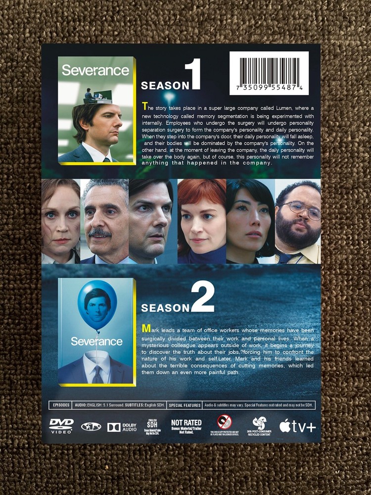Brand new quality dvd's of the series Severance, nicely packed and RECEIVED VERY QUICKLY - 2 DAYS!! Thanks!