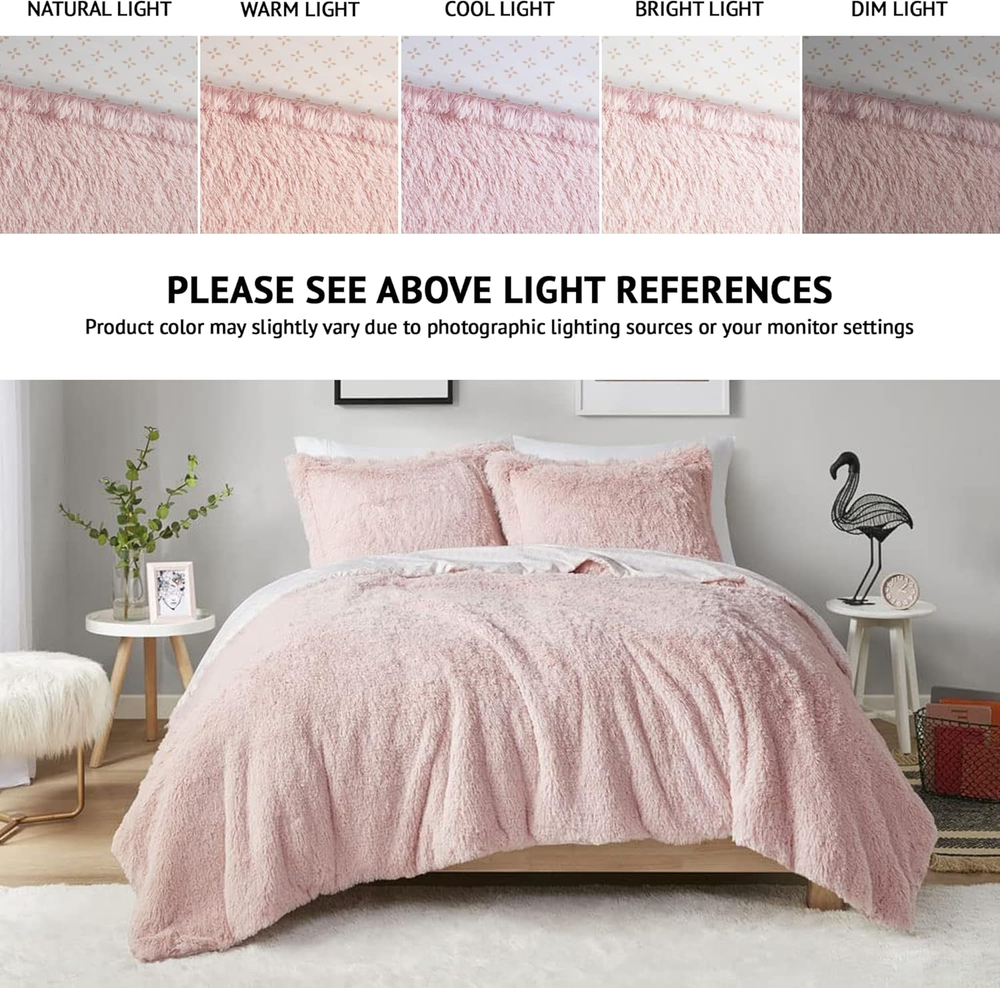 Menu Other Items Feedbacks About Us Contact Us Add To Favorites Shaggy Faux Fur Cozy Reversible Comforter Set Petal Print Reverse, Modern All Season Lightweight Fuzzy Bedding with Matching Sham, Blush Full/Queen 3 Piece 100% Polyester Shaggy Fur The Intelligent Design Effie Shaggy faux fur Comforter is very soft and reversible to microfiber with beautiful petals print. It offers incredible 2 in 1 value for ultimate comfort. The reversible dual texture fabric is a perfect combination for all season comfort. You can use the faux fur side for colder season, and the print side for warmer. Set includes: 1 Comforter: 90"W x 90"L, 2 Standard Shams: 20"W x 26"L + 2"D Care Instructions: Machine Wash. Comforter might arrive compressed. Shake and snap comforter to fluff or put in the dryer with a dryer ball on a no heat cycle for 20 minutes to bring it back to shape. The Intelligent Design Effie Shaggy faux fur Comforter is very soft and reversible to microfiber with beautiful petals print. It offers incredible 2 in 1 value for ultimate comfort. The reversible dual texture fabric is a perfect combination for all season comfort. You can use the faux fur side for colder season, and the print side for warmer. Now you can use your favorite cozy winter cover all year round and named it Effie! Available in 3 differnt sizes to choose form and comes in 3 popular color selection, Grey, Ivory and Blush. For your convinience, it is also machine washable. Item Specification Item model number ID10-2103 Style Lightweight Reversible Color Blush Pattern Geometric Fabric Type 100% Polyester Shaggy Fur Material Shaggy Fur Country of Origin China Item dimensions L x W x H 90 x 90 x 1.5 inches Item Weight 7.27 pounds Batteries required No Theme Modern Size Full/Queen Seasons All Refill fiber Number of Pieces 3 Product Dimensions 90 x 90 x 1.5 inches Product Care Instructions Machine Wash Included Components 2 Standard Shams, 1 Comforter Dimensions Shipping Returns Additional Info Product Dimensions: 90.0 inches x 90.0 inches x 1.5 inches. Weight: 7.27 lb Fast shipping is very important for us. Our standard shipping service is FREE. Your order will be shipped within 1-3 business days upon full payment received. Most items are delivered within 3-5 business days, however, please allow 3-10 business days. We are shipping only to USA. We only ship to the confirmed Paypal address. We reserve the right to cancel any order for any reason at any time. We are not responsible for undeliverable addresses. We offer a 30 day return policy from checkout winning date. Your satisfaction is guaranteed! If for any reason you are unhappy with your item, just return it within 30 days for a full refund, minus shipping cost. Please contact us prior to initiating a return so that we can issue you a refund authorization. Items defective upon receipt must be packaged in their retail packaging as if new and returned with a detailed description of the problem. Return shipping fees are not refundable. We reserve the right to decline any returns if the above guidelines are not followed. All of our items, unless otherwise stated, will only run on 120 volts. Please check to make sure your country complies with these specifications. If you have a problem or question regarding your transaction please contact us before leaving any type of feedback. We will work with you to resolve any problem you may have.