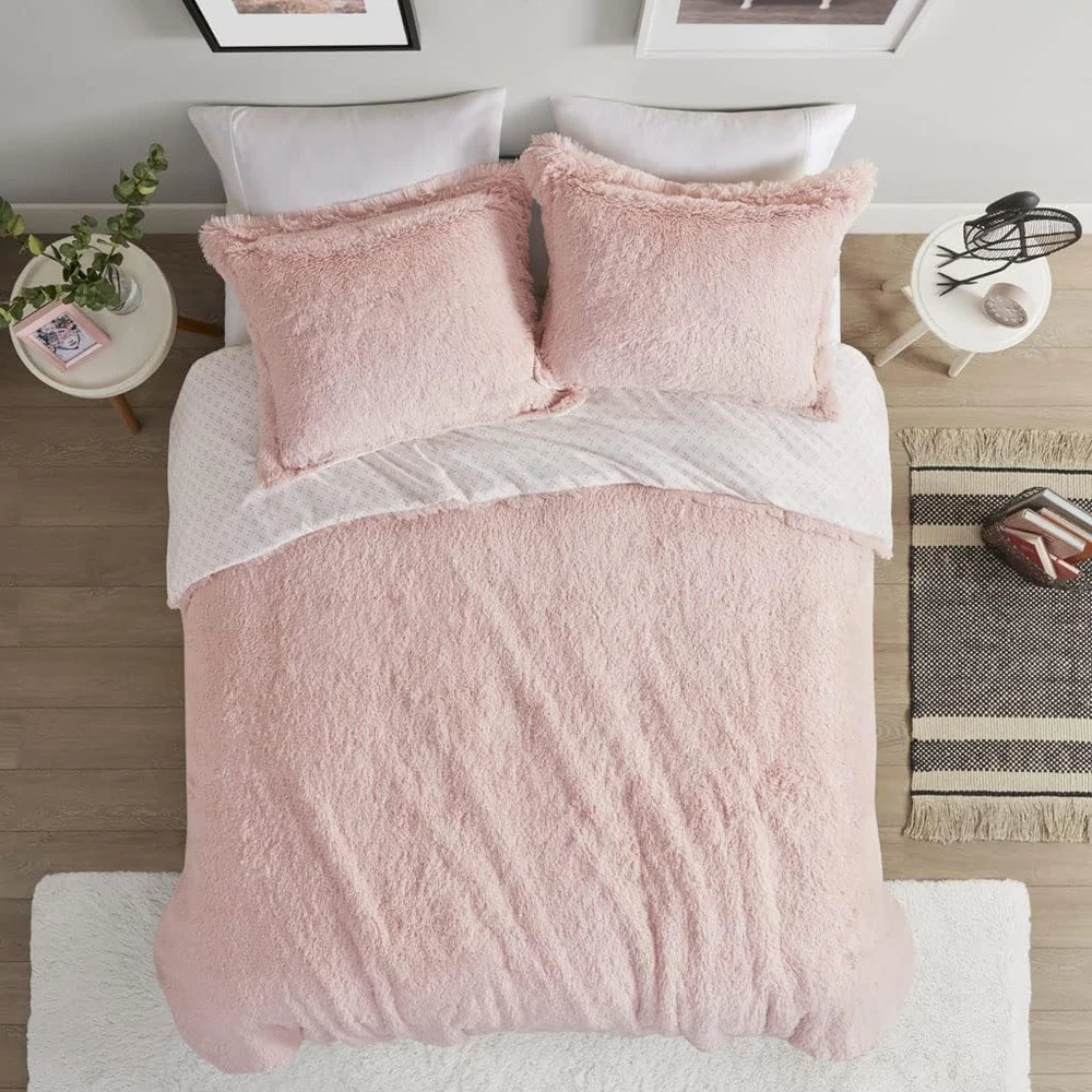 Menu Other Items Feedbacks About Us Contact Us Add To Favorites Shaggy Faux Fur Cozy Reversible Comforter Set Petal Print Reverse, Modern All Season Lightweight Fuzzy Bedding with Matching Sham, Blush Full/Queen 3 Piece 100% Polyester Shaggy Fur The Intelligent Design Effie Shaggy faux fur Comforter is very soft and reversible to microfiber with beautiful petals print. It offers incredible 2 in 1 value for ultimate comfort. The reversible dual texture fabric is a perfect combination for all season comfort. You can use the faux fur side for colder season, and the print side for warmer. Set includes: 1 Comforter: 90"W x 90"L, 2 Standard Shams: 20"W x 26"L + 2"D Care Instructions: Machine Wash. Comforter might arrive compressed. Shake and snap comforter to fluff or put in the dryer with a dryer ball on a no heat cycle for 20 minutes to bring it back to shape. The Intelligent Design Effie Shaggy faux fur Comforter is very soft and reversible to microfiber with beautiful petals print. It offers incredible 2 in 1 value for ultimate comfort. The reversible dual texture fabric is a perfect combination for all season comfort. You can use the faux fur side for colder season, and the print side for warmer. Now you can use your favorite cozy winter cover all year round and named it Effie! Available in 3 differnt sizes to choose form and comes in 3 popular color selection, Grey, Ivory and Blush. For your convinience, it is also machine washable. Item Specification Item model number ID10-2103 Style Lightweight Reversible Color Blush Pattern Geometric Fabric Type 100% Polyester Shaggy Fur Material Shaggy Fur Country of Origin China Item dimensions L x W x H 90 x 90 x 1.5 inches Item Weight 7.27 pounds Batteries required No Theme Modern Size Full/Queen Seasons All Refill fiber Number of Pieces 3 Product Dimensions 90 x 90 x 1.5 inches Product Care Instructions Machine Wash Included Components 2 Standard Shams, 1 Comforter Dimensions Shipping Returns Additional Info Product Dimensions: 90.0 inches x 90.0 inches x 1.5 inches. Weight: 7.27 lb Fast shipping is very important for us. Our standard shipping service is FREE. Your order will be shipped within 1-3 business days upon full payment received. Most items are delivered within 3-5 business days, however, please allow 3-10 business days. We are shipping only to USA. We only ship to the confirmed Paypal address. We reserve the right to cancel any order for any reason at any time. We are not responsible for undeliverable addresses. We offer a 30 day return policy from checkout winning date. Your satisfaction is guaranteed! If for any reason you are unhappy with your item, just return it within 30 days for a full refund, minus shipping cost. Please contact us prior to initiating a return so that we can issue you a refund authorization. Items defective upon receipt must be packaged in their retail packaging as if new and returned with a detailed description of the problem. Return shipping fees are not refundable. We reserve the right to decline any returns if the above guidelines are not followed. All of our items, unless otherwise stated, will only run on 120 volts. Please check to make sure your country complies with these specifications. If you have a problem or question regarding your transaction please contact us before leaving any type of feedback. We will work with you to resolve any problem you may have.
