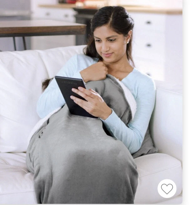 Sharper Image Calming Cozy Massaging Heating wrap -Gray. Heating is in foot part only, not in the whole blanket.