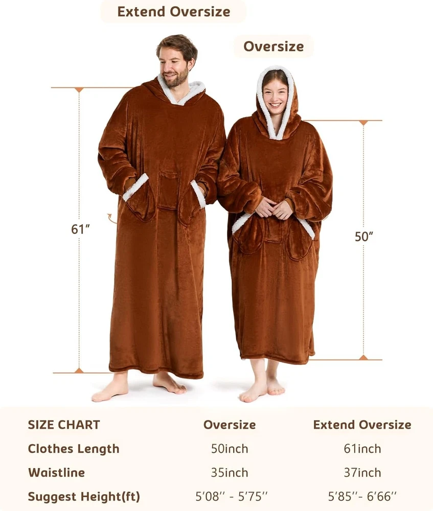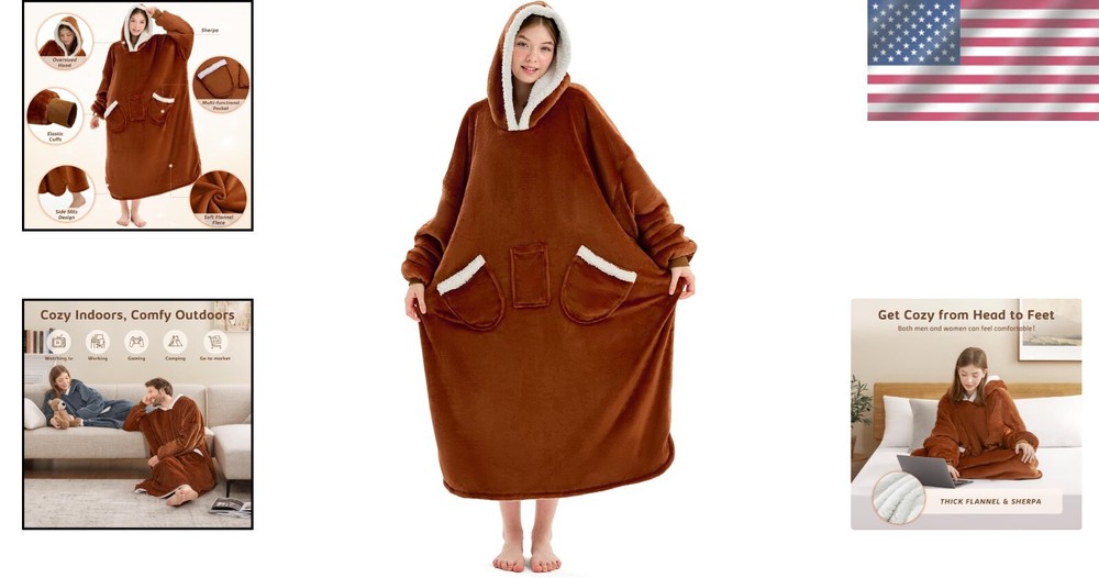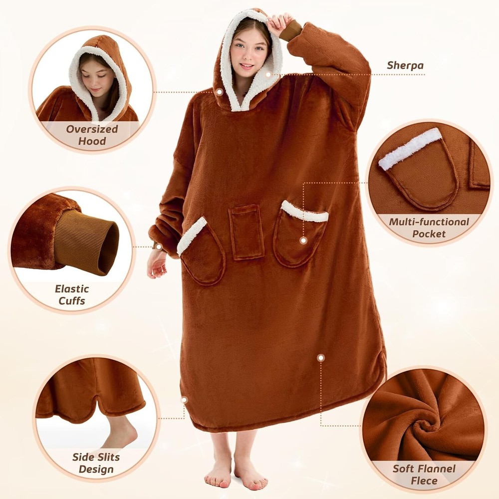 Sherpa Fleece Oversized Hoodie Blanket - Perfect Gift for Cold Days < class="slides"> ‹ › ‹ › ‹ › ‹ › ‹ › ‹ › ‹ › ‹ › ‹ › Sherpa Fleece Oversized Hoodie Blanket Perfect Gift for Cold Days Wrap yourself in warmth and comfort this winter with our Sherpa Fleece Oversized Hoodie Blanket. Crafted with a luxurious blend of 100% Polyester fleece, this oversized wearable blanket is designed to keep you cozy from head to toe. Key Features: <> Warmest Comfortable Hoodie: Made from soft 220 GSM flannel and 200 GSM sherpa fabric, ensuring exceptional warmth for those chilly mornings. Thoughtful Length: Generously oversized at 48 inches long and 36 inches wide, this blanket hoodie won’t hinder your movement while covering your feet just right. Durable Design: Stronger stitching technology prevents wear and tear, keeping seams intact even through machine washes. Versatile Usage: Ideal for lounging at home, after a shower, working, cooking, or even outdoor activities; this wearable blanket is your shield against the cold. Perfect Gift: An ideal present for friends, family, or anyone who loves to stay cozy; perfect for Christmas, Thanksgiving, Mother’s Day, or Valentine’s Day. Experience Ultimate Comfort This oversized hoodie blanket is not just a mere fashion statement; it’s designed to envelop you in warm softness while maintaining your freedom of movement. The cinched cuffs and spacious hood ensure that cold air stays out while you dance, lounge, or simply enjoy your favorite book. A Thoughtful Gift For Everyone Whether it’s for your best friend, mom, dad, or kids, nothing says 'I care' like this snuggly oversized hoodie. Ideal for anyone who dreads the cold, it’s a present that will be cherished and loved. Make winter days special by gifting warmth and comfort. Choose the Sherpa Fleece Oversized Hoodie Blanket today and indulge in a cocoon of cozy bliss! Shipping <> <> Free & Fast Shipping - We offer free shipping to most of the USA with a normal delivery time of 3-7 days. However, due to the current situation, additional delivery time (up to 3 weeks) may be required for some items. Alternative Carriers - We may use alternative carriers (e.g. USPS, FedEx, UPS, etc.) to ensure your package arrives safely and on time. Due to the use of multiple carriers, we are unable to provide a tracking number automatically. Handling Time - Orders are processed and shipped within 1-2 business days of receiving cleared payment. Shipping Restrictions - Shipping to Alaska, Hawaii, Puerto Rico, Guam, and other US territories may incur shipping charges or delivery restrictions. Please contact us before ordering, or your order can be refunded/cancelled. State Restrictions - There may be restrictions based on your state of purchase. For example, certain items may not be shipped to California due to state regulations. Contact for Tracking Updates - If you require tracking updates or have any concerns about the delivery of your order, please feel free to contact us, and we will be happy to assist you. Return <> <> 30-Day Hassle-Free Returns - We want you to be completely satisfied with your purchase. If you are not, you can return the item within 30 days of receiving it for a full refund or exchange. Easy Return Process - To start a return, simply contact us and we will provide you with a prepaid return shipping label and detailed instructions. Restocking Fee - There are no restocking fees for returns. However, the buyer is responsible for return shipping costs if the return is not due to a seller's error. Refund Processing Time - Refunds will be processed within 5 business days of receiving the returned item in its condition. Payment We accept all major credit cards, PayPal, and Apple Pay for your convenience. Your payment information is secure and encrypted to ensure a safe and seamless transaction. Please complete your payment within 3 days of purchase to avoid any delays in shipping. Feedback Your feedback is extremely important to us. We strive to provide the best products and customer service possible. If you are satisfied with your purchase, please take a moment to leave us a positive review. If you have any concerns or issues with your order, please contact us before leaving negative feedback. We are committed to resolving any problems and ensuring your satisfaction. Contact Us If you have any questions or concerns, please feel free to out to our customer support team. You can contact us through the eBay messaging system. We are available Monday to Friday, 9:00 am to 5:00 pm EST, and we will do our best to respond to your inquiry within 24 hours. Buy it now and enjoy a pleasant shopping experience! Item Length: Wearable Blanket Hoodie Item Width: Wearable Blanket Hoodie Unit Quantity: 3.45 Material: Flannel,Sherpa Fleece,100% Polyester,Sherpa fabric Features: Machine Washable,Oversized,Wearable,Hooded,Long,Giant Pocket,Cinch Cuffs,Strong Stitching Care Instructions: Machine Wash Department: Adults,Unisex Adult Room: Bedroom Size: Standard Type: Wearable Blanket Color: Brown Style: Cozy Shape: Rectangular Insulation: Warm Closure Type: No Closure GSM (Grams per Square Meter): 220 Unit Type: lb