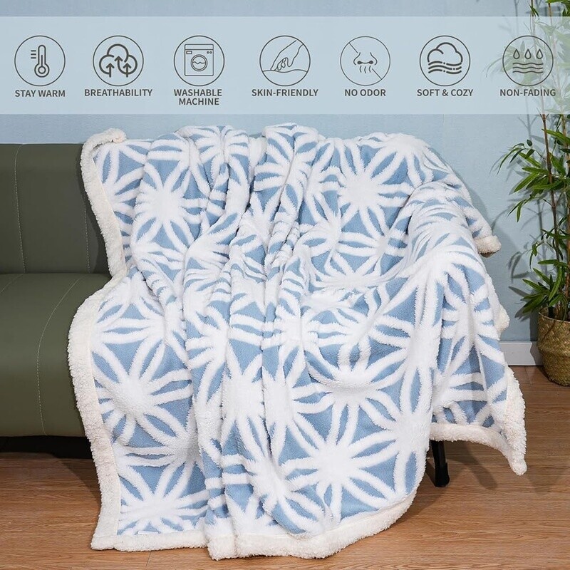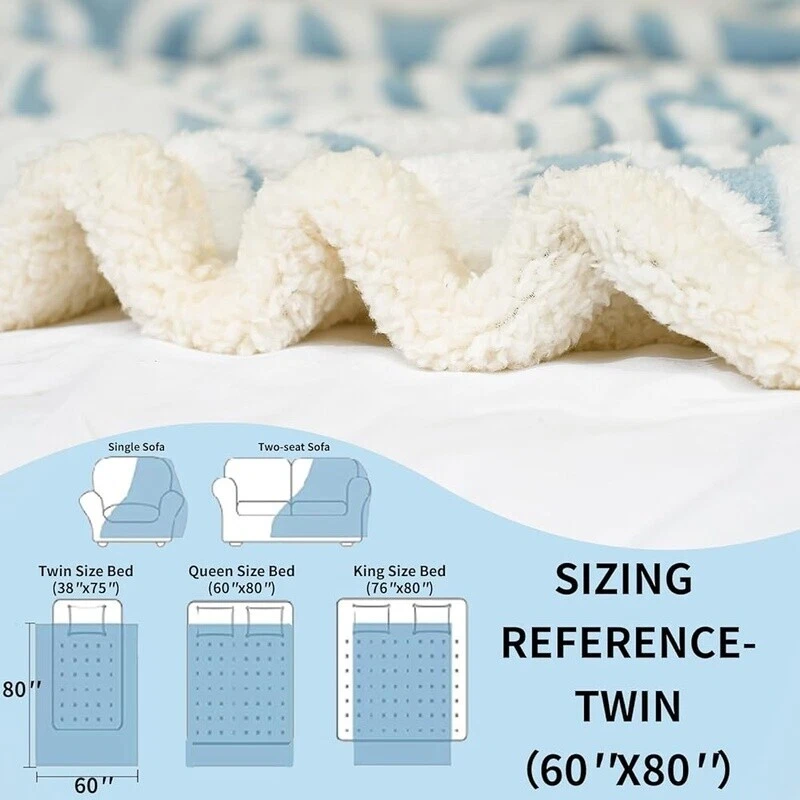 You may also like Step-On Trash Can Lid Lock Slow Close Hands-Free 13G Kitchen Office Home New 52.79 USD 55.57 USD Free shipping 5% off Portable Double Burner Outdoor Gas Stove Propane Cooker Adjustable Hose Patio 68.04 USD 71.62 USD Free shipping 5% off High Protein Dry Dog Food Lamb Rice Formula Grain Free Kibble All Breeds 8 lb 22.77 USD 23.97 USD Free shipping 5% off 7 inch Nakiri Knife High Carbon Stainless Steel Ultra Sharp Cooking Cleaver Gift 36.36 USD 38.27 USD Free shipping 5% off Pre-Lit Christmas Gift Box Set 3 Piece Sisal Decor Mini Lights Indoor Outdoor US 91.43 USD 96.24 USD Free shipping 5% off Patio Umbrella 6.5Ft Tilt Sunshade Outdoor Market UV Protection Garden Navy Blue 46.92 USD 49.39 USD Free shipping 5% off 40 PCS Food Storage Containers with Lids Airtight Leakproof Meal-Prep Reusable 39.16 USD 41.22 USD Free shipping 5% off 20 In High Velocity Floor Fan Adjustable Tilt Portable Air Circulator Cooling 88.63 USD 93.29 USD Free shipping 5% off Wooden Coat Hooks Wall Mounted Organizer Heavy Duty Rustic Wall Hangers 4 Pack 23.76 USD 25.01 USD Free shipping 5% off 9" Wall Mounted Makeup Mirror W/ 1X/7X Magnifying 360 Degree Rotating Dual Sided 31.77 USD 33.44 USD Free shipping 5% off Self Watering Hanging Planters 10 Inch 2 Pack Indoor Outdoor Pots W/ Drainage US 37.75 USD 39.74 USD Free shipping 5% off Low Profile Car Ramps 2-Pack 3" Lift 6600 lbs Capacity TR Maintenance Ramps New 80.37 USD 84.6 USD Free shipping 5% off SUPERIOR MATERIALS & WORKMANSHIP throw blankets are produced from premium wool and have a super soft,comfy and fluffy feel to the touch,making them the perfect cozy blanket for the couch or bed. Our strict workmanship requirements are the result of our rigor seriousness about our products. Tightly knit stitched and double fleece rolled edges make the blankets have been pulled and tested many times to ensure that they are not easy to shed,pill,or tie knot. DESIGN AND PACKAGING-Our Blankets are made of pure natural fleece fur which is more skin-friendly and breathable,giant sherpa fleece on the reverse. This thick blanket not only provides warmth,but also enhances your home decor. Our textured blankets are wrapped in bow ribbon decorative and vacuum-packed,simply place the blanket in a ventilated area for about a while to regain its thickness. AS GIFTS AND APPLICATION SCENARIOS-These bed throws are surfaced with classic floral checkered pattern,that serves as a beautiful decorative to any room,add a touch elegance to your living,Whether lounging on the couch,watching TV or life in the living room with the family,sleeping and reading in the bedroom,using as a bed blanket or office blanket in fall and winter,Or as gifts for friend's birthday,Easter,Mother's Day,Father's Day,Christmas,Thanksgiving,New Year,Valentine's Day and more! BLANKET CARE INSTRUCTIONS-During use,if there is any dirty stuff attached,it can be easily wipe off. Machine washable in cold water,gentle cycle and tumble dry low. Please don't iron at high temperature. We advise washing in a mesh laundry bag,It's best to wash furry blankets and clothes separately,which helps to maintain the durability of the blanket and keep plush and cozy for years. Material: Polyester, Microfiber, Fleece Color: Mi Blue Special Feature: Lightweight, Cozy, Warm, Soft, Breathable Style: Modern You may also like Leatherette Tufted Square Storage Ottoman W/ Hinged Lid 250 Pounds Load Brown US 89.16 USD 93.85 USD Free shipping 5% off Portable Folding Fire Pit 22 In Steel W/ Carrying Bag Screen Tool Wood Burning 81.69 USD 85.99 USD Free shipping 5% off Heavy Duty Shipping Packing Tape 4 Rolls W/ Dispensers Clear Industrial Adhesive 25.17 USD 26.49 USD Free shipping 5% off Musical Piano Keys Electric Kettle 1.7L Rapid Boil BPA-Free Auto Shut-Off New 46.92 USD 49.39 USD Free shipping 5% off Square Towel Ring Holder Wall Mounted Champagne Bronze Bath Bathroom Accessories 50.6 USD 53.26 USD Free shipping 5% off Biometric Fingerprint Safe Box Durable Alloy Steel 0.5 Cub Capacity Alarm System 58.65 USD 61.74 USD Free shipping 5% off Adjustable Weight Bench Multi-Purpose Foldable Incline Decline 500lb Capacity US 134.28 USD 141.35 USD Free shipping 5% off Single Serve Iced Coffee Maker Hot Cold Compatible K-Cup Pod Fast Clean Gray New 116.14 USD 122.25 USD Free shipping 5% off 500FT Bluetooth Wireless Meat Thermometer Digital Probe Food Cooking Thermometer 58.65 USD 61.74 USD Free shipping 5% off Bunk Beds Window Perch for Dogs Bedside Lounge Hand Wash Non-slip Storage Wood 167.86 USD 176.69 USD Free shipping 5% off 20-Piece Flatware Set Stainless Steel Service 4 Dishwasher Safe Dining Utensils 31.8 USD 33.47 USD Free shipping 5% off Stainless Steel 12-Cup Thermal Coffee Maker Programmable Brew Strength Control 209.76 USD 220.8 USD Free shipping 5% off