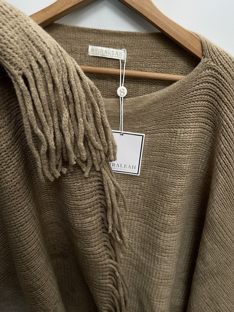This cozy knit poncho from Shiraleah is perfect for any occasion. The mid-length sleeveless design is made from acrylic fabric with a solid pattern and features fringe accents, making it a unique and stylish addition to your wardrobe. The camel color is perfect for any season and the oversized, collarless design makes it comfortable and lightweight. It's perfect for casual wear or travel, and the boho, coastal, and nautical themes make it a great choice for outdoor activities. This poncho is a classic piece that will never go out of style, and the art, flower, and teacher themes add a touch of personality to your outfit.