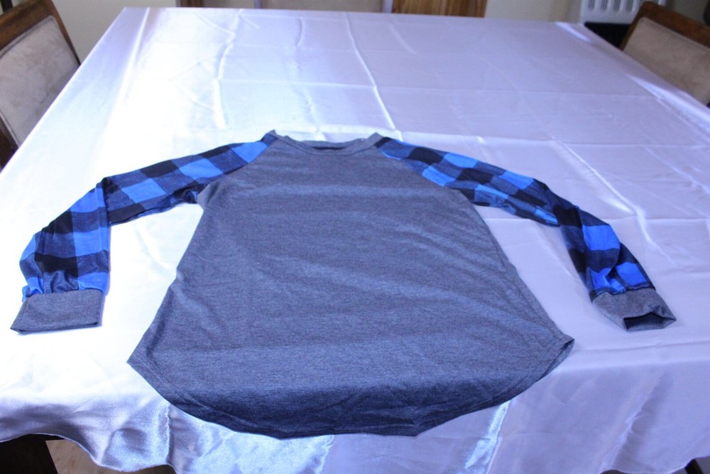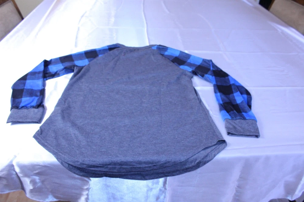 Shirt Super Soft Comfy Cozy Gray w/ Blue Plaid Sleeves Small Sleepwear Women's Everyday shirt Actual measurements pit to pit 18", neck to hem down back 25", neck to cuff at sleeve 26", diameter around at bottom hem 39" this is a little longer in the back these shirts are very soft, thin material would be great for lounging / sleeping Items are new in factory packaging, the packaging may have some signs of handling. Most are sealed, all are unused new items. We are committed to providing exceptional customer service, we will answer any questions you may have about our products as quickly as possible. We take care in taking photos to show condition, writing condition descriptions to best of our ability. If you feel we have missed something or your item arrives damaged from transit, please communicate with us and we will get it worked out to your satisfaction. You may be interested in our other eBay listings . - Powered by SixBit's eCommerce Solution