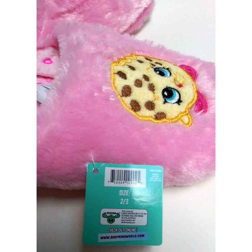 Shopkins Kooky Cookie Fuzzy Soft Kids Girls Pink Slippers Key Features: One Pair Shopkins slippers Character: Kooky Cookie Sizes: Large 2-3 (9 inches from heel to toe) Plush construction Embroidered character design at forefoot Padded interior 100% polyurethane soles with tread Brand New with tag item # SPK10153 VISIT OUR EBAY STORE FOR MORE ITEMS