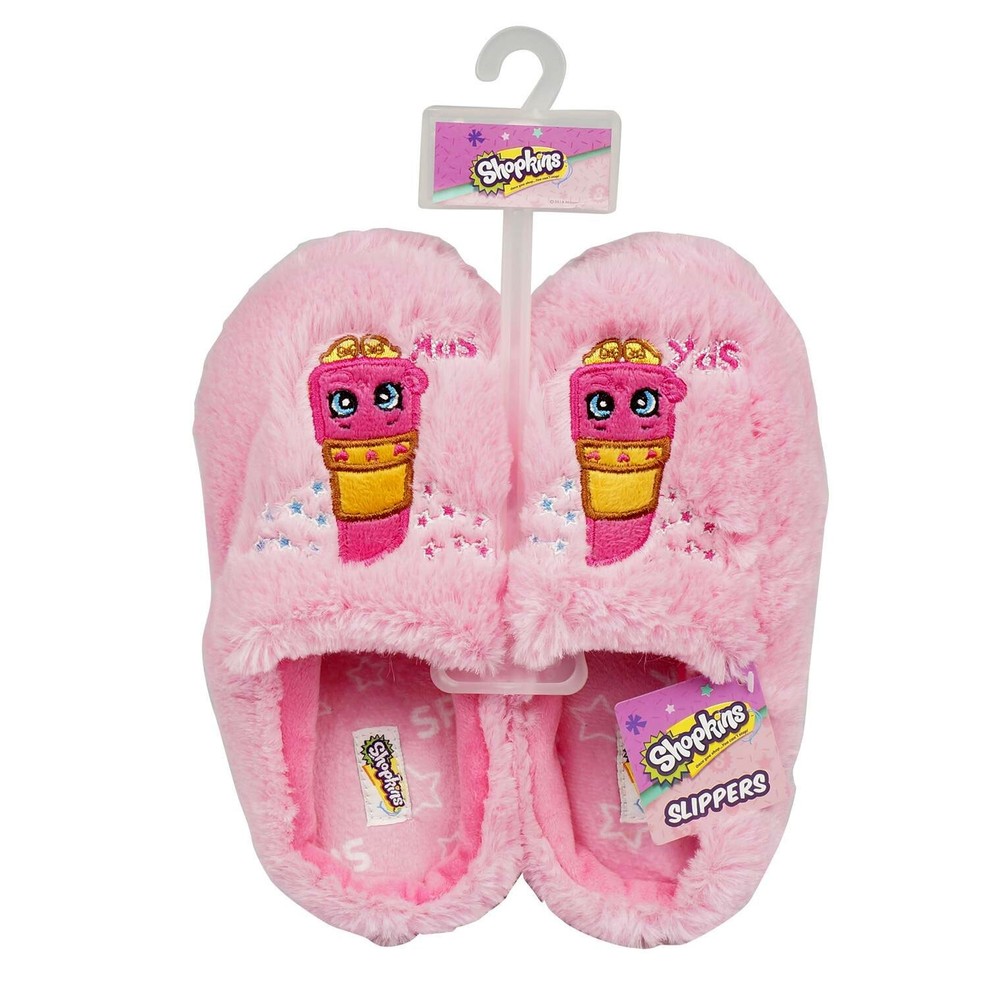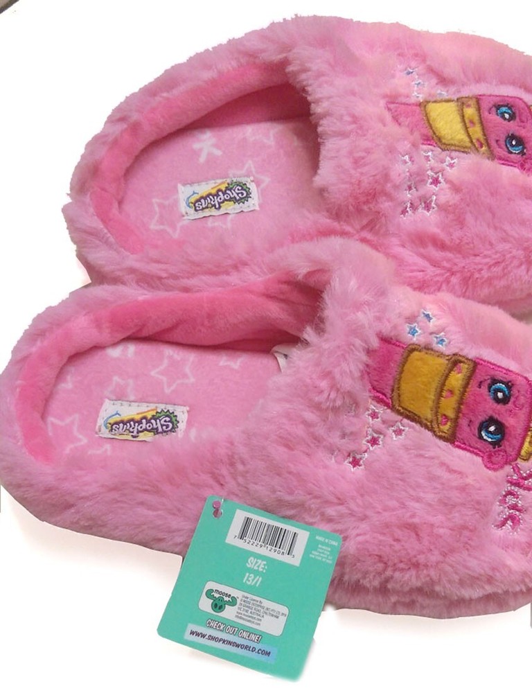 Shopkins Girls' Lippy Lips Pink Slippers Key Features: One Pair Shopkins slippers Character: Lippy Lips Sizes: Medium 13-1 (8 inches from heel to toe) Plush construction Embroidered character design at forefoot Padded interior 100% polyurethane soles with tread Brand New with tag item # SPK1015 VISIT OUR EBAY STORE FOR MORE ITEMS