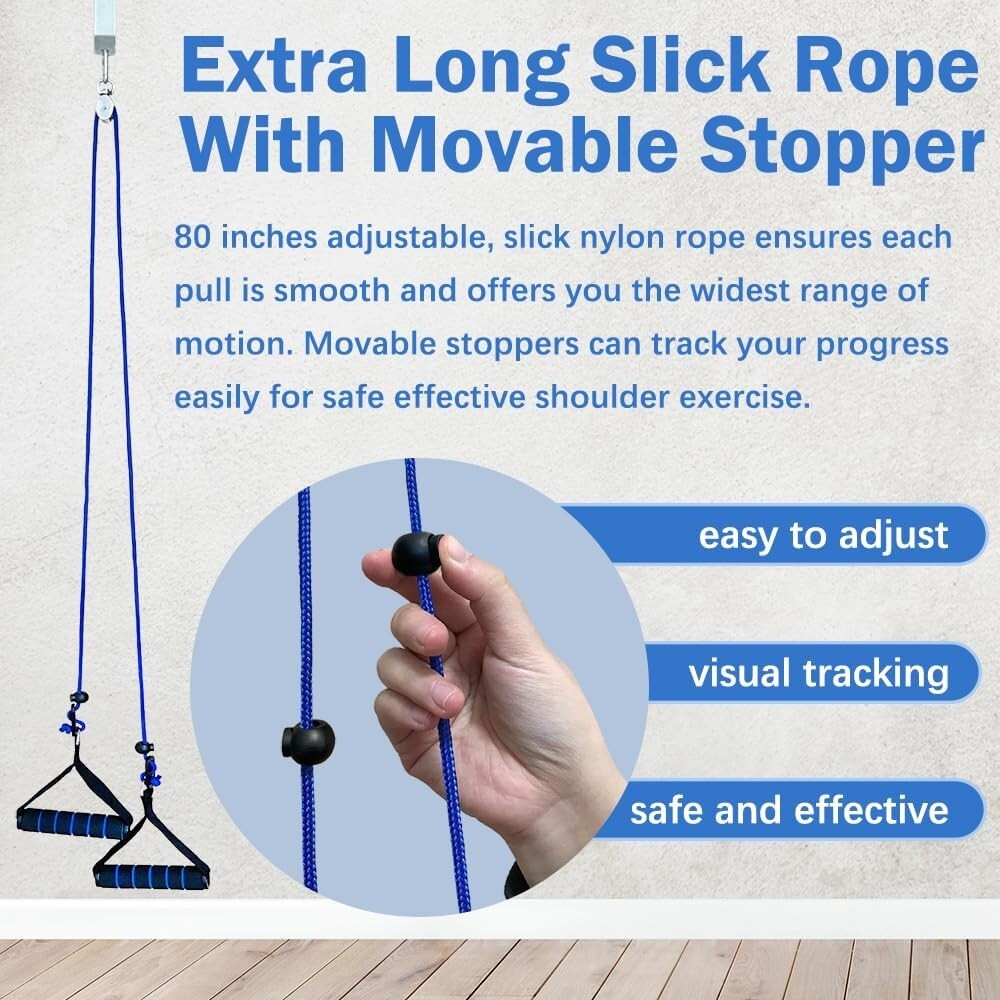 Shoulder Pulley for Physical Therapy and Rehab Over the Door Smooth Motion, Blue Item Weight 0.43 Kilograms Brand Phantawell Color Blue Material Metal Handle Type Strap About this item RESTORE YOUR SHOULDER HEALTH- Phantawell shoulder pulley over the door physical therapy exerciser uses the force of gravity for passive shoulder rehabilitation. This controlled, simple, yet effective shoulder pulley for physical therapy helps speed the healing process, increases range of motion, and relieves shoulder pain. BUILT TO LAST- The pulleys for shoulder rehab over door is made with zinc-coated housing to resist deformation over time, and the nylon wheel allows the rope moves quietly and smoothly throughout the shoulder rehab, letting the rope glide through the shoulder pulley like “butter on a hot griddle.” STURDY METAL BRACKET - Our over the door shoulder pulleys package comes with a high-quality, well-brushed metal bracket over door hanger. Designed for easy installation, simply attach the pulley system over the top of any door. Rest assured that our non-slip and anti-scratch metal bracket won't cause any damage to your door. Experience convenient and hassle-free shoulder exercises with our reliable pulley system. COMFORTABLE TO USE- Two handles of over the door shoulder pulley are covered with foam padding, soft, and anti-slip to secure the grip. Simply adjust the rope through button adjuster to the desired length, and you are ready to go for your shoulder rehab. KEEP THAT JOINT MOVING!- Physical therapy pulley for shoulder door makes smooth movements in a pain-free range. The arm pulley for physical therapy over the door can regain shoulder lubrication and prevent it from becoming stiff or frozen. Phantawell over door pulley for shoulder therapy is easy-to-use, at-home products that put health and overall well-being back in your own hands. ADJUSTABLE ROPE LENGTH - Our shoulder pulley is designed with convenience in mind. Easily adjust the rope length through the 3-hole button adjuster to your preference following the included instructions. Product Description Product information Technical Details Strap Type foam-padded Item Package Dimensions L x W x H 7.5 x 4.9 x 1.3 inches Package Weight 0.43 Kilograms Brand Name Phantawell Manufacturer Phantawell Style Modern Size Metal Bracket