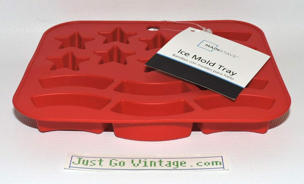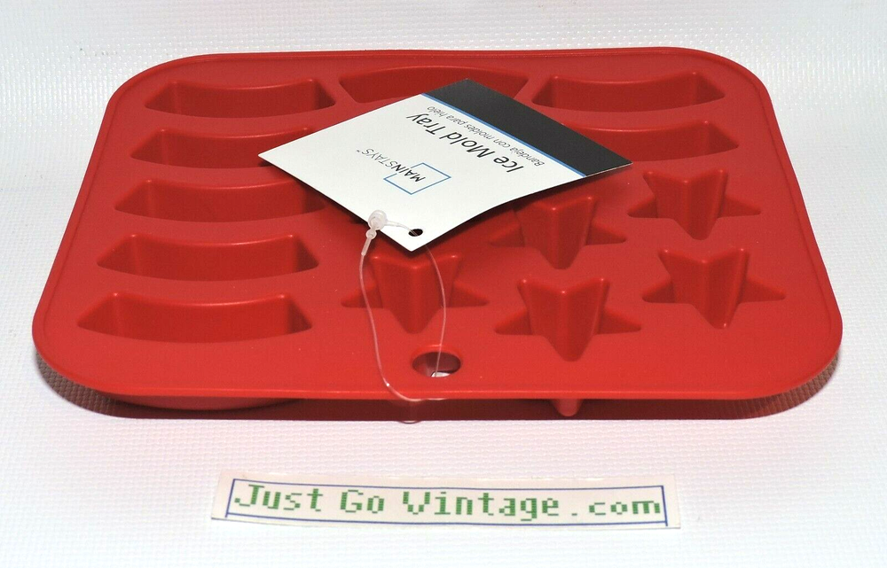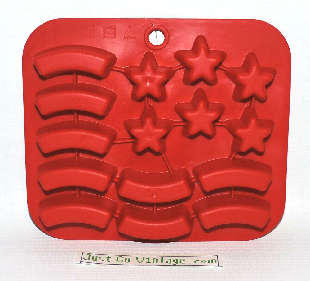 Silicone Stars & Stripes USA Flag Ice Cube Candy Mold Trays RED, NEW, QTY DISCOUNT! BRAND NEW with Tags as shown. You get one RED "Red Engine" silicone mold tray per purchase. Buy multiple & save up to 20%! The tray measures 5.5" Tall x 6.5" Wide. The ice cube/candy size for the star is about 1.25" Wide (point to point), the size for the stripe is about 1.75" Wide x 0.5" Tall. Great for Memorial Day, 4th of July - Independence Day, Veteran's Day, or any patriotic holiday. FREE S&H! Please give me 1 business day to ship and let me know if you have any questions. Thanks!