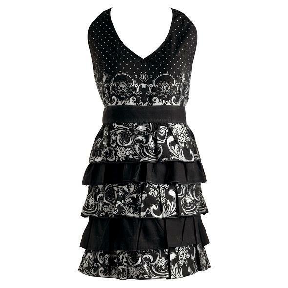 Silver Acanthus Ruffles Vintage Apron (Black Tie Party Apron) Measures 30" hem x 35" length - 100% Cotton. Full halter style apron with layered skirt. New stock from closed store. From Design Imports, DII Tiers of ruffles adorn this adorable apron. Made from cotton, this black and silver acanthus pattern apron offers easy care. Take your snazzy retro style from the kitchen to the cocktail party in the Silver Acanthus Ruffles Vintage Apron from Design Imports. Five tiers of ruffles add feminine flair. Made of 100% cotton, the apron is machine washable. The Design Imports Silver Acanthus Ruffles Vintage Apron infuses your cooking and entertaining with mid-20th century style 100% cotton One size fits most Machine wash cold, tumble dry low, low iron Measures 30" W at hem x 35" L We sell a variety of antiques, collectibles and newer items. Combined shipping discounts are always welcome as long as it does not compromise the items being shipped together. If an item is too fragile or too large, it may have to ship separately. Questions are always welcome and thank you for taking a moment to view our items! We are not experts on antiques and try to describe each item to the best of our ability using completed listings on eBay and internet searches. Please contact us if we misrepresent an item and we will fix the problem immediately. Combined shipping discounts are available on items won or purchased around the same time. Please contact us if you need an exact quote, or your items are completed at different times. We have a quick ship rating with Ebay, so most items ship within ONE day!