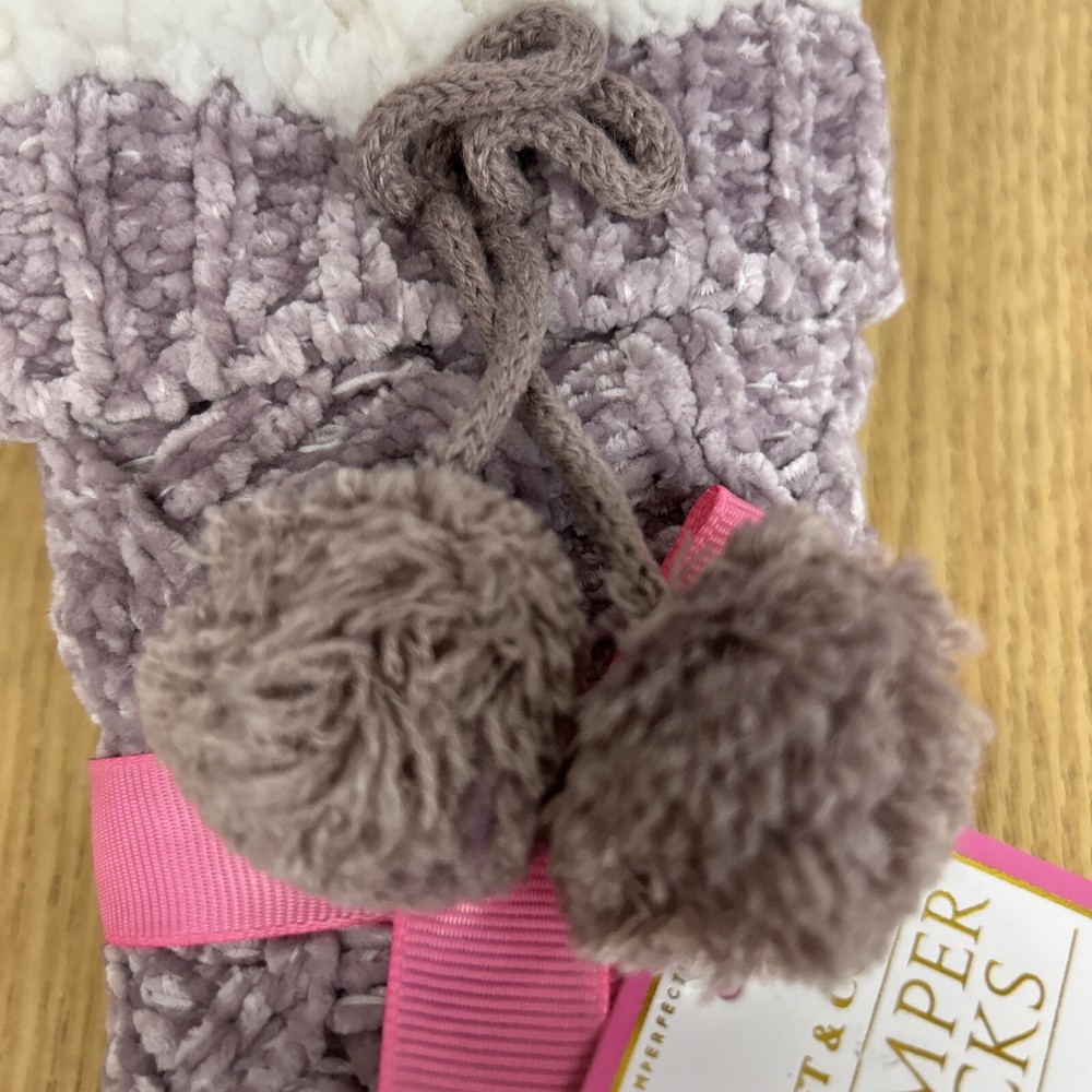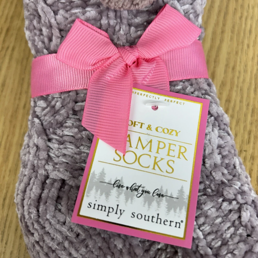 Snuggle up in style with these cozy Simply Southern Camper socks. The beautiful purple lilac color and cable knit pattern make them perfect for everyday and casual wear. The socks are made from soft and machine washable polyester material and feature a sherpa lining for extra warmth. Slip-resistant grippers on the bottom make them perfect for walking, dancing, or yoga. These one-size socks with a full toe design are perfect for any woman looking for soft and cozy socks to wear during winter, fall, or spring. The novelty socks come in a pack of one and are perfect as a gift or personal use.