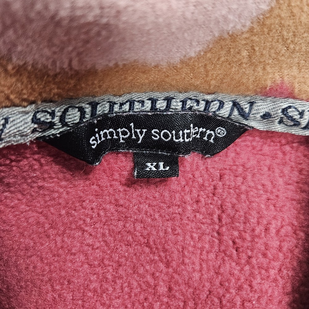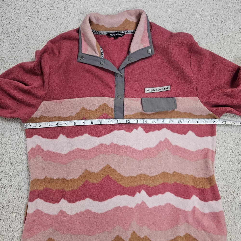 Simply Southern Fleece T Snap Pullover Pink Mauve Womens XL Mountain Pattern Cozy Layer Fall Winter Good pre-owned condition...