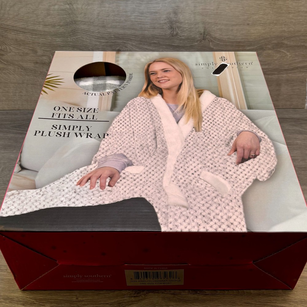 Simply Southern Sweater/Plush Wrap Color: Gray - Size: One Size Fits All - Plaid - 100% Polyester Brand new...