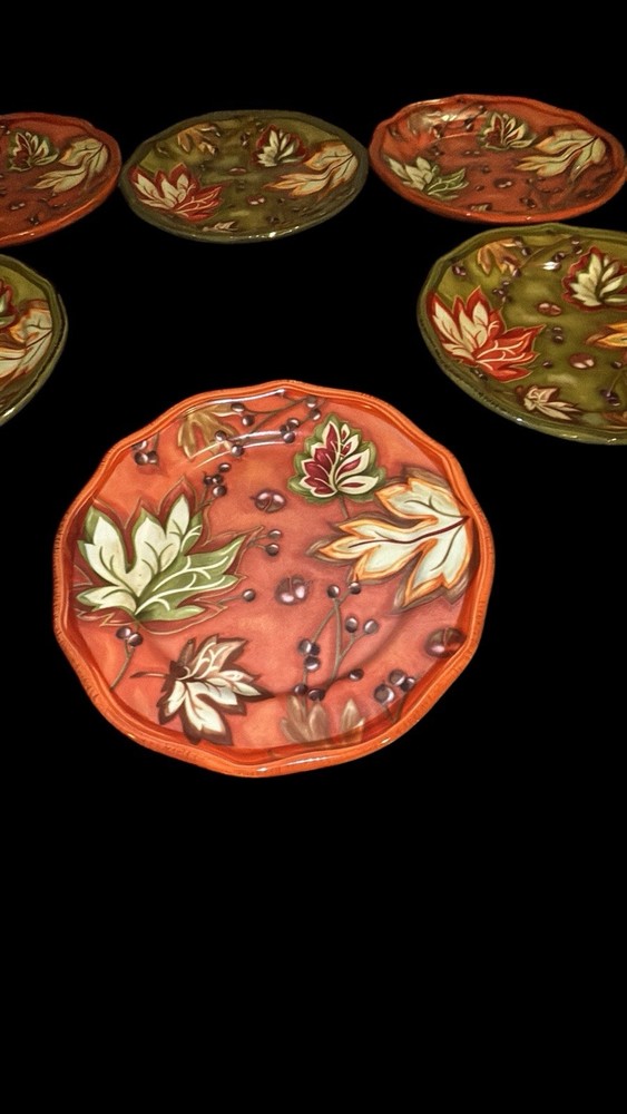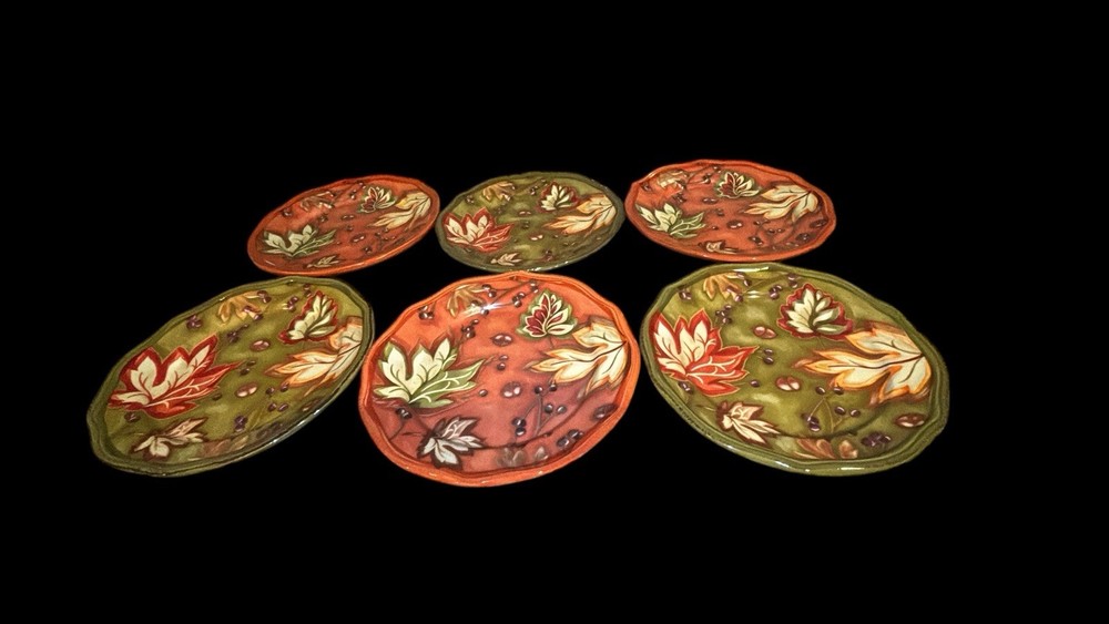 The Better Homes & Gardens Harvest Salad/Dessert Plates are vibrant and stylish additions to any kitchen or dining table. Featuring a beautiful orange and green color scheme, these 8-1/2” ceramic plates are perfect for serving salads or desserts in a garden-themed setting. With a focus on quality and design, these plates are sure to enhance the aesthetic of your home. 3 Orange & 3 Green
