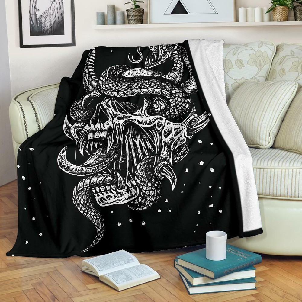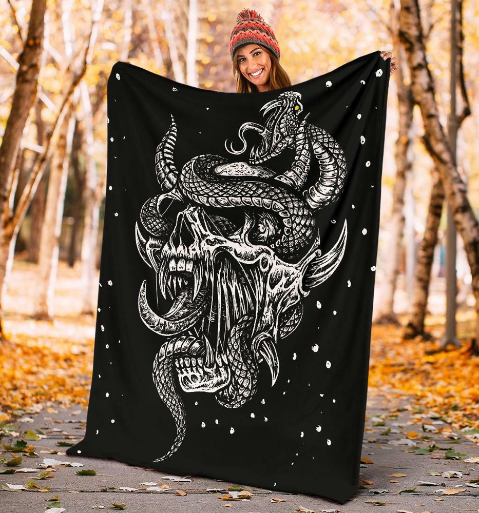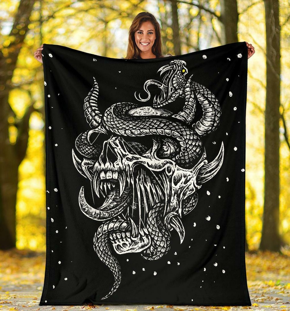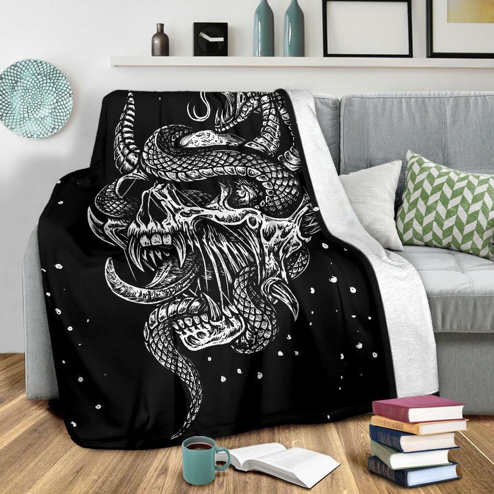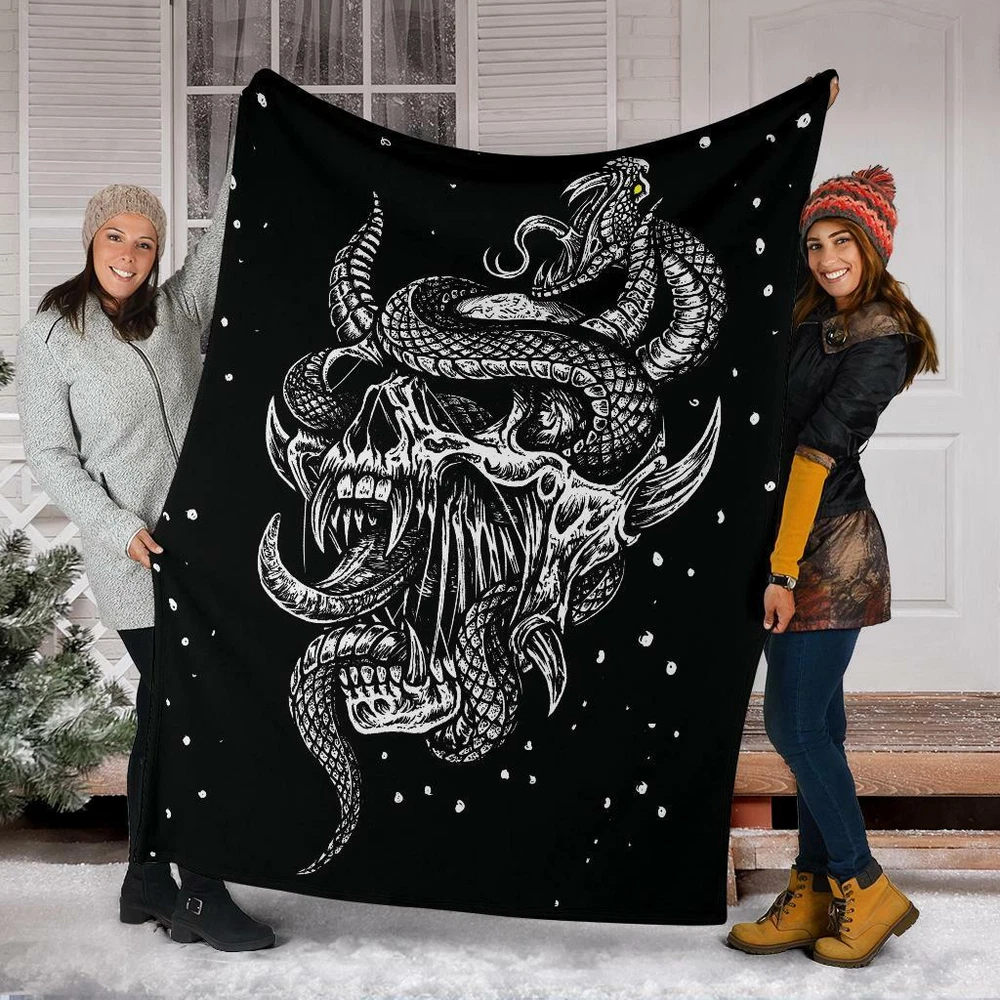 Satanic Skull Serpent Glowing Eyes Cozy Throw Blanket