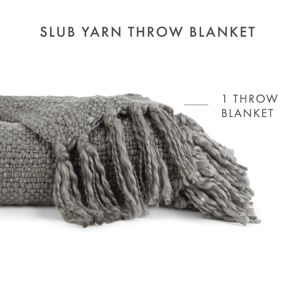Slub-Yarn Throw by Kaycie Gray Fashion Collection Introducing a new lineup of luxury sheets, comforters and everything you need for your bed. Every product is made of the finest, most durable materials, while being machine washable. We are dedicated to providing products and services that provide you with ultimate luxury, comfort, and high-end finishes. We take pride in the level of care we put into each and every one of our products. For us less is never more; we use only top quality materials to ensure that your new bedding collection will last a lifetime. Our goal is to provide you with the best possible experience when it comes to buying luxury bedding. Features Our solid basketweave throw's large scale texture and intriquing fringe is achieved by using ultra-soft yarns of varying thickness and slubs. The result is a medium weight knit throw that is extra cozy and oh-so-inviting. Perfect for a quick refresh of any space, or lounging around! Material: Ultra soft slub yarns, Fringed edges. Woven ultra soft acrylic Care: Machine wash, Tumble Dry. Stylish: Suitable for a wide range of styles such as, mid century modern, coastal, beach house, farmhouse, glam, industrial, rustic, shabby chic, modern, boho, Scandinavian, traditional, French country, contemporary and transitional. Package Includes: 1 Throw blanket - available in one size only - dimensions: 50" x 60". Contact us We can be contacted at any time through eBay messages if you have any questions, comments or product requests. We will respond to you within 24 hours and do our best to help you out! We encourage our customers to contact us with any questions or concerns! We'd like to be sure you are completely satisfied with your purchase. Returns ienjoy Home offers a 30-day money-back guarantee on all items. Free return shipping. If you need to return an item for a refund, please contact us within the return period. All ienjoy Home sales include our 30-day money-back guarantee. Items may have additional warranty coverage. To determine if your purchase is covered by our manufacturer warranty, please contact us for further assistance. Shipping All orders ship within 1 business day. Standard shipping is FREE on all items shipped within the United States. For express and international shipping, please contact us for further assistance. (Unfortunately we do not ship to Alaska or Hawaii). Please keep in mind, if placed over the weekend your order will ship out the following business day. When your order ships, you will be emailed tracking information. International shipping is handled by eBay's Global Shipping program. For more information please contact eBay directly. Recomended Items from Kaycie Gray store Comforter Kaycie Gray Hotel Collection Luxury 8PC Comforter set $25.99 Luxury Sheets Rayon From Bamboo Luxury 4PC Soft Sheets Set by Kaycie Gray Hotel Collection $44.99 Solid Sheets Luxury 4PC Sheets Set Comfort by Kaycie Gray Hotel Collection $16.99 Comforter set Kaycie Gray Fashion Ultra Soft Desert Stripe 3PC Reversible Duvet Cover $17.99 Visit our store for more products Kaycie Gray by iEnjoy Home .