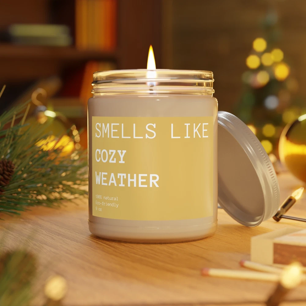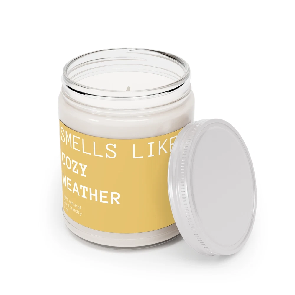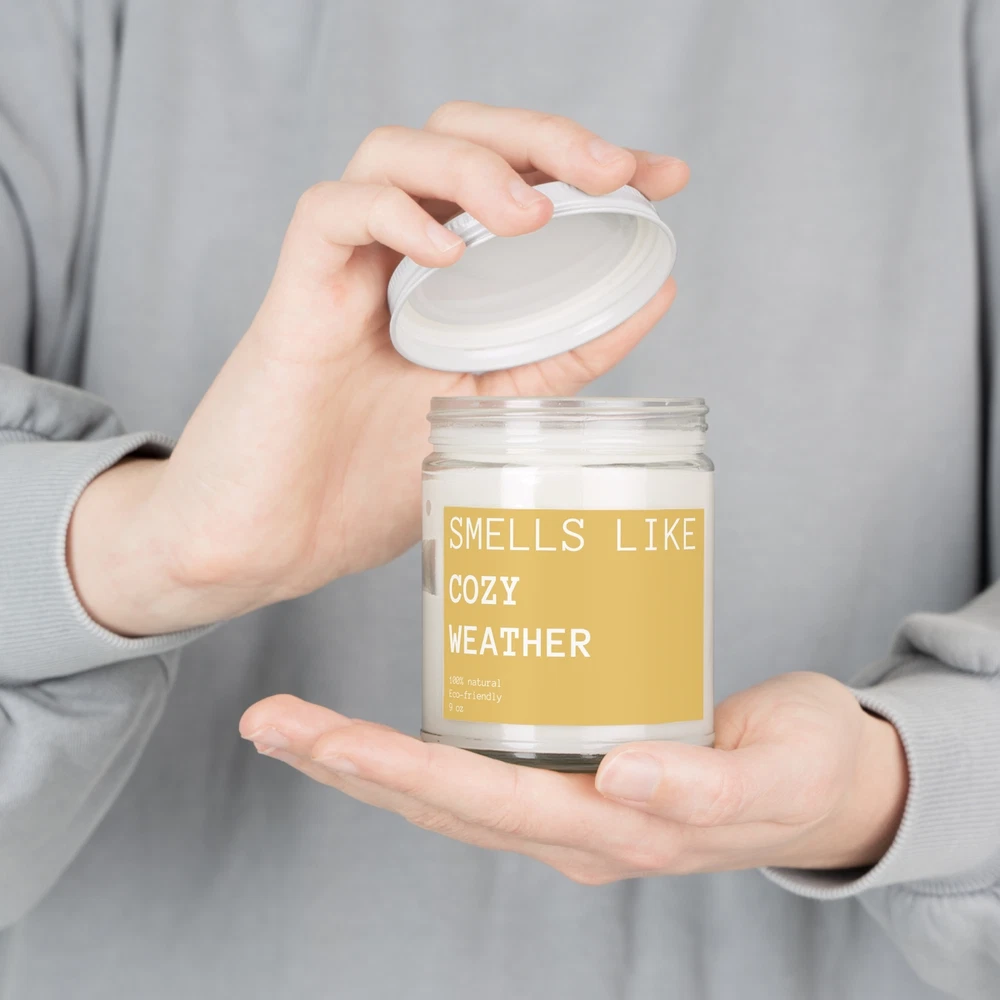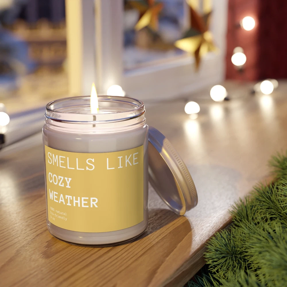 Smells like Cozy Weather Fall Candle, Autumn Candle Fall Decor Scented Decor 9oz **This scented candle comes in 3 different scents - Vanilla Bean, Comfort Spice, Eucalyptus and Spiced Pumpkin. **Candles are made on demand. 2-3 business days Production time and 3-5 business days U.S. Shipping time ***Before leaving any negative feedback, please reach out so we can make things right. 9oz Diameter, in 2.80 Height, in 3.50