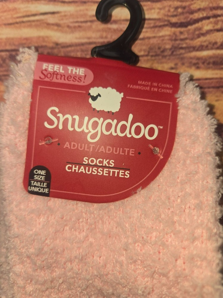 Made with comfort in mind, these Snugadoo socks provide warmth and softness. Crafted from a polyester and spandex blend, they ensure a snug fit. • One size fits all • 99% polyester, 1% spandex • Pink and white design • Machine washable • Do not bleach or iron Features: • Socks Size: Unisex OS Condition: New With Tags "SOLD AS PICTURED SENSIBLE OFFERS WELCOMED" Please check any measurements and look closely at all photos. Normal turn around is 1 business day. Real offers encouraged. Thanks for looking.