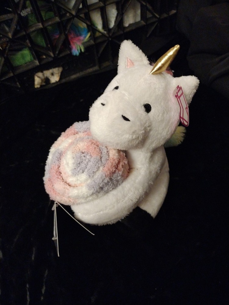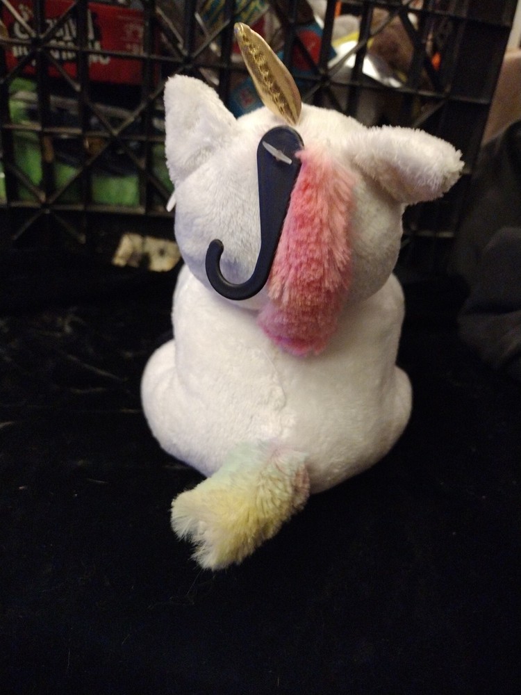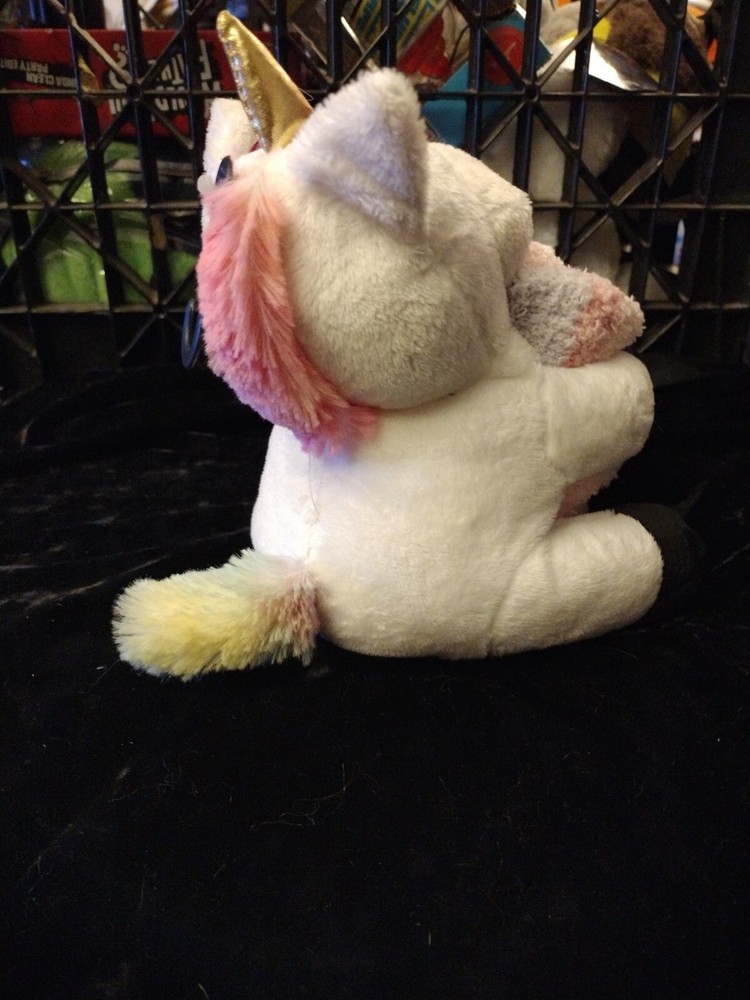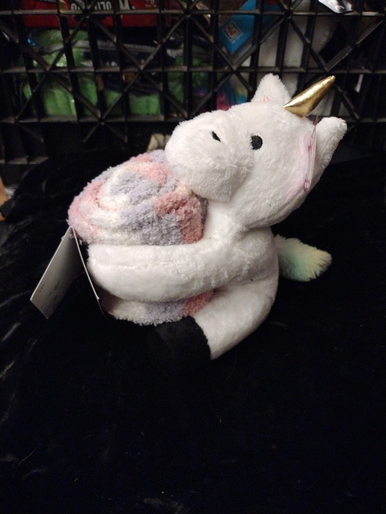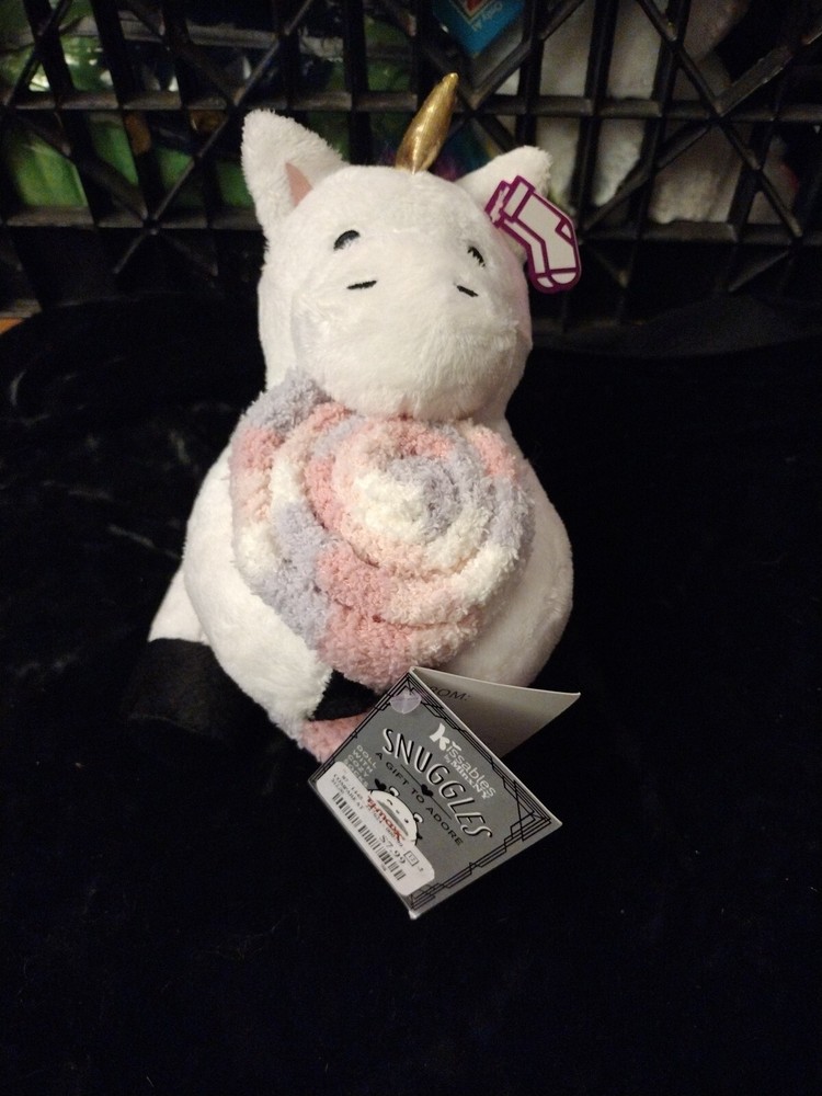 Adorable Snuggles the unicorn holding a nice warm plush set of socks. So warm and cozy!...