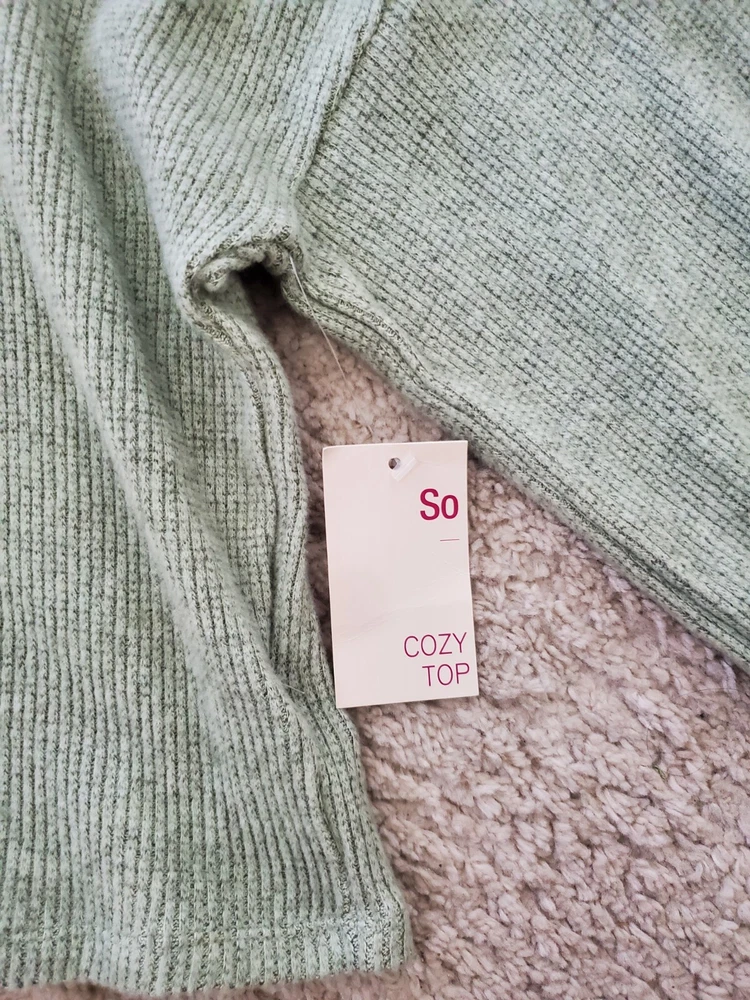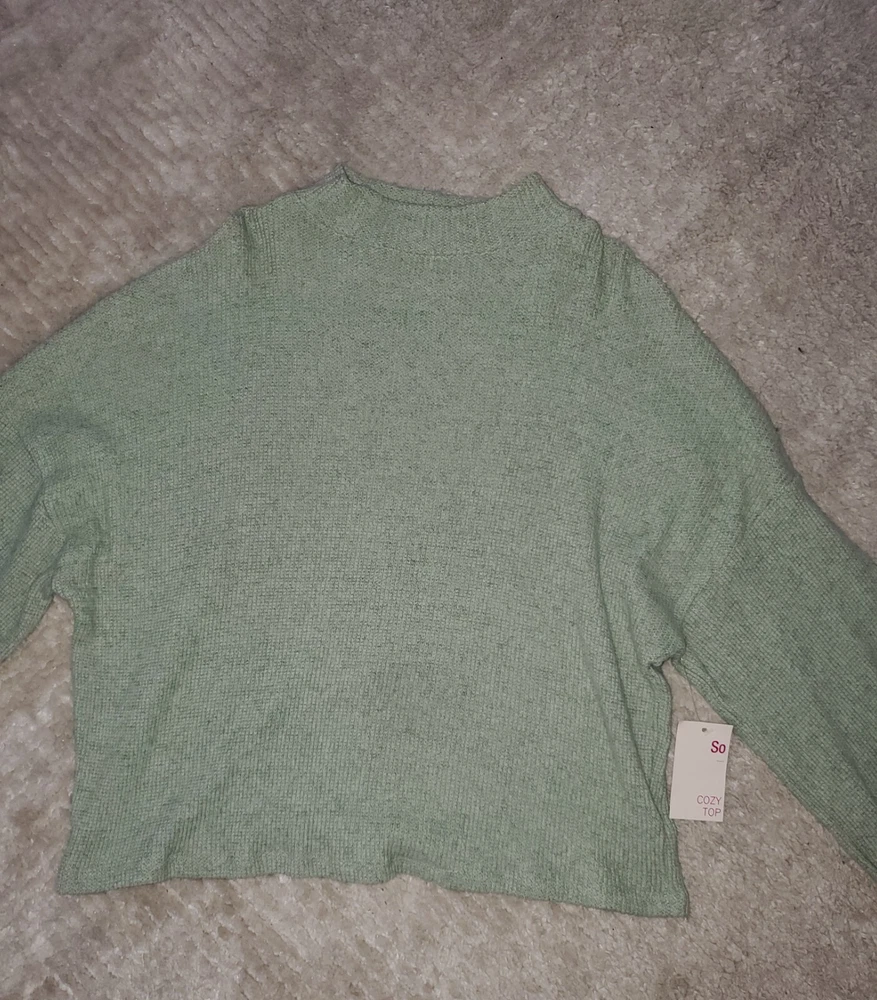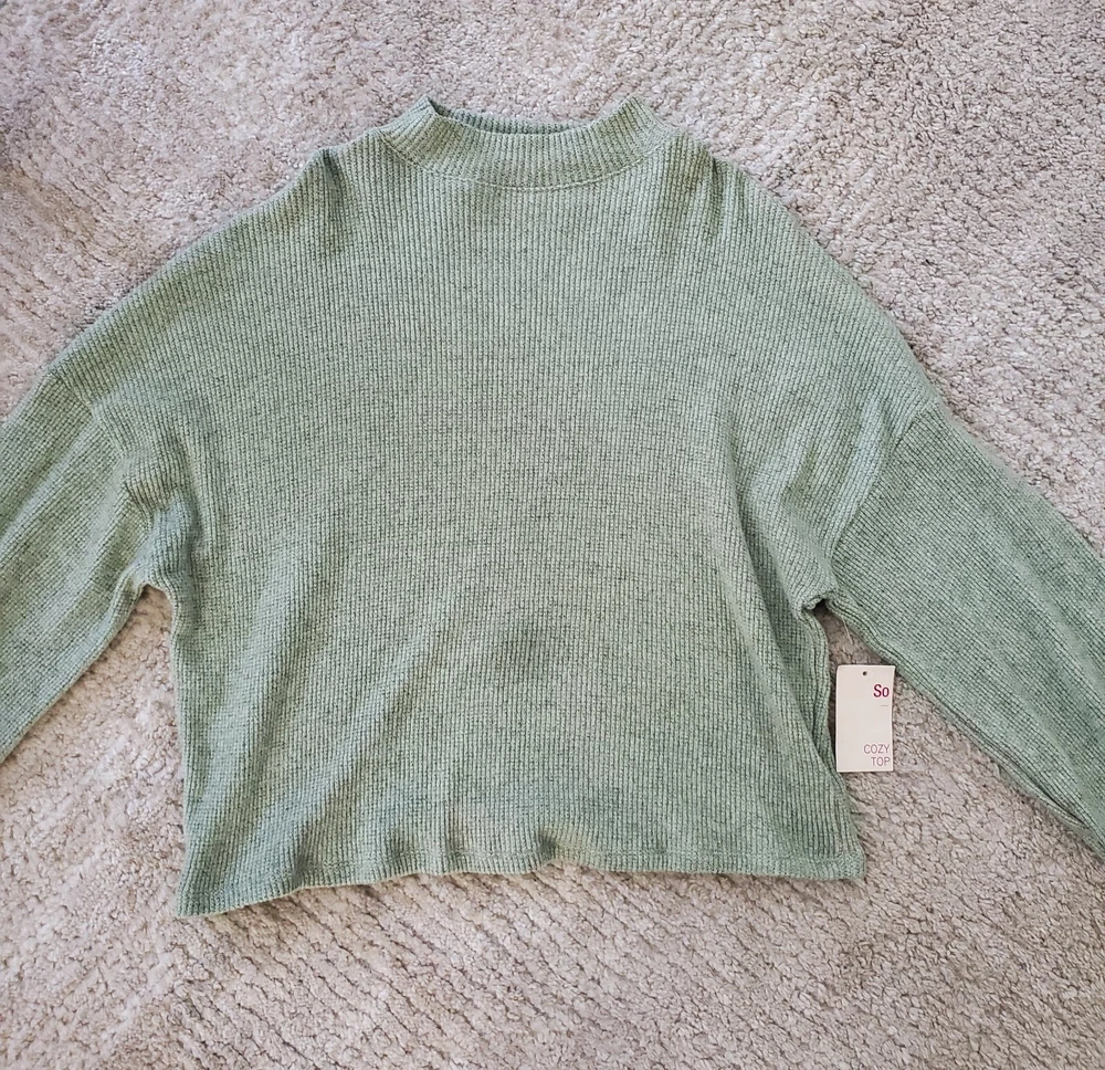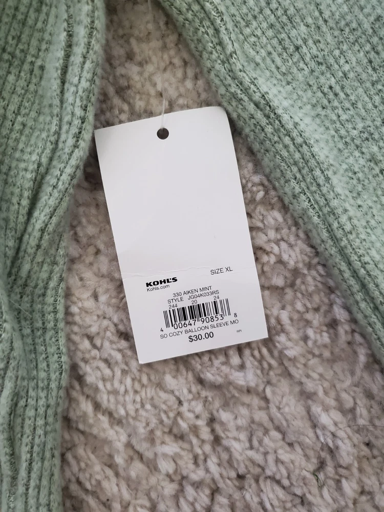This So Cozy sweater is the perfect addition to your wardrobe! The oversized ballon sleeve design is both stylish and comfortable, making it perfect for any occasion. The mint green color and classic style make it easy to pair with any outfit. Made from a blend of polyester, spandex, and cotton, it is both durable and breathable. This sweater is available in size XL and is suitable for regular size types. It is a must-have for any woman's clothing collection. So Cozy is a trusted brand known for their high-quality clothing. Get your hands on this comfortable and stylish sweater today!