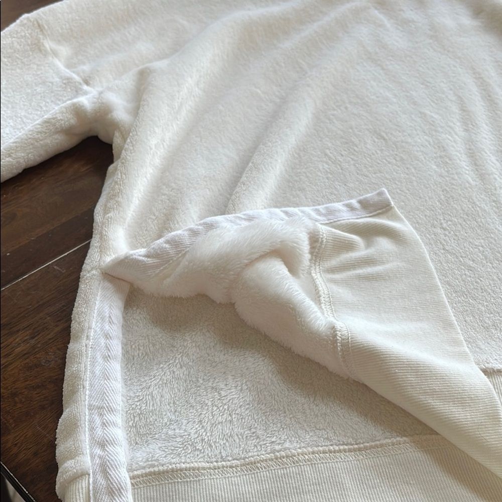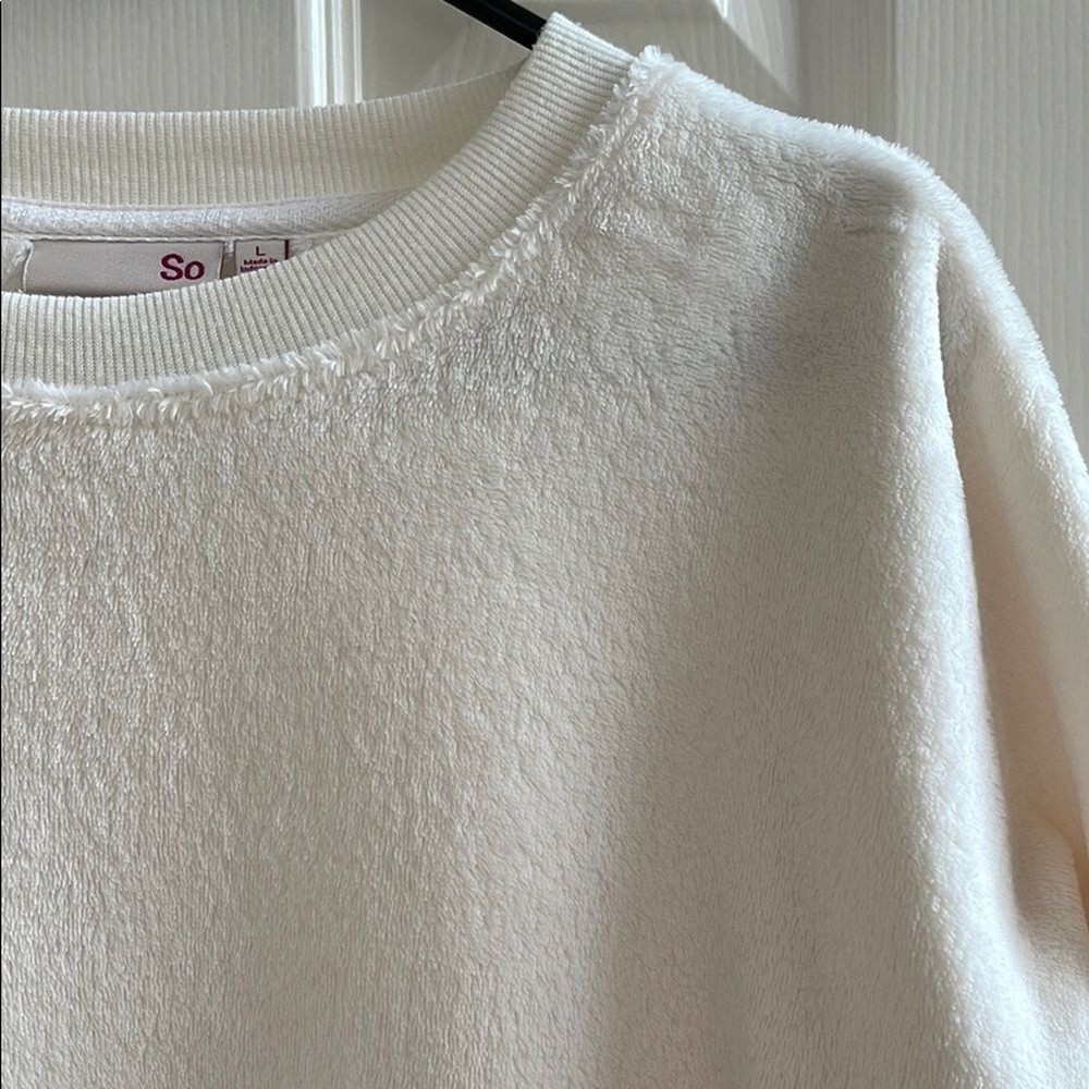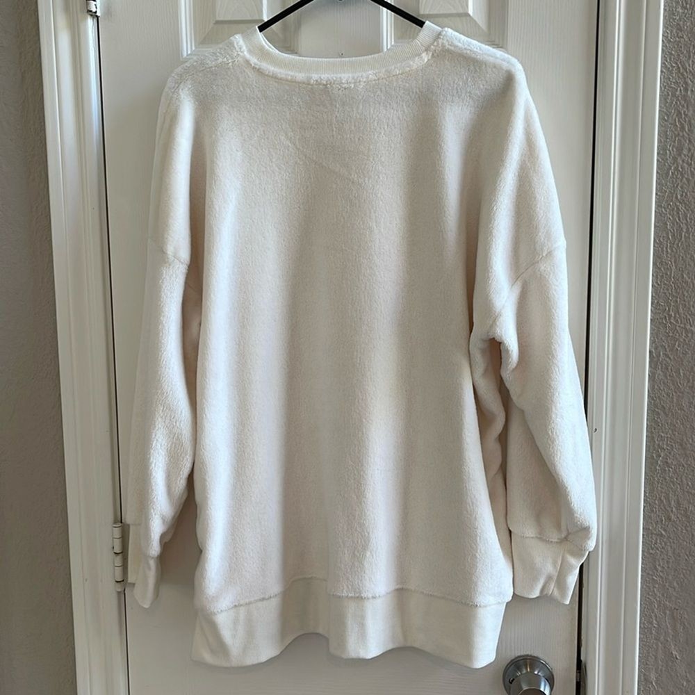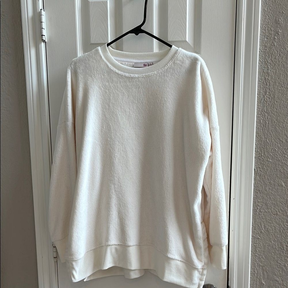 So Cozy Cream SOFT Faux Fur Sweatshirt Size Large INCREDIBLY SOFT!!!!! and comfortable sweatshirt Perfect for casual wear Oversized with a relaxed fit, slits on sides and slightly longer length in back Excellent condition! #comfy #cozy #lounging #warm