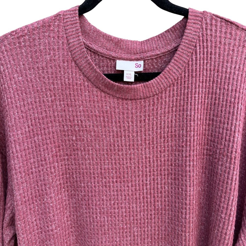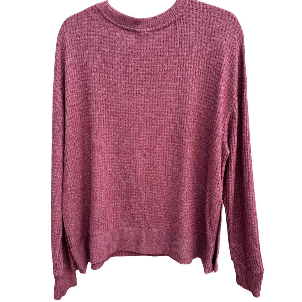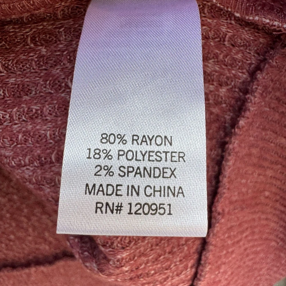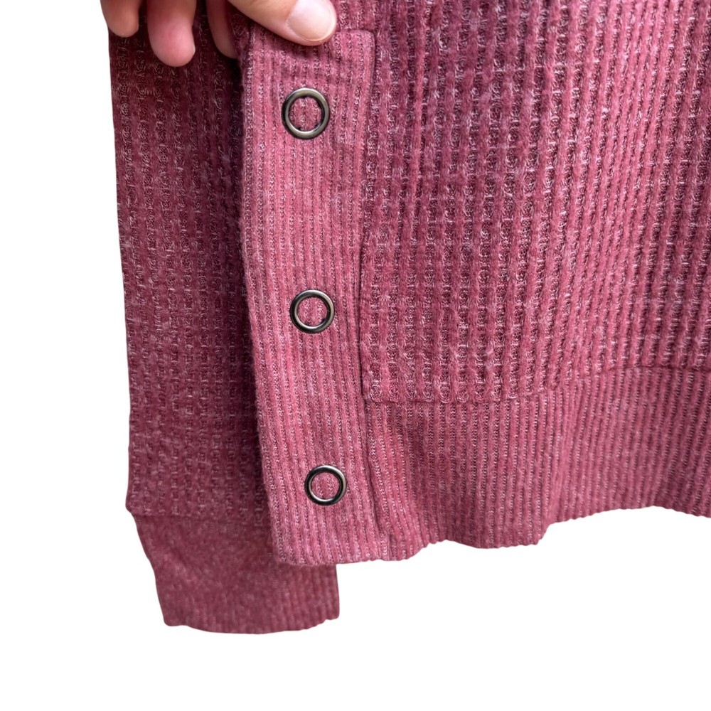 This women's pullover sweater in a sophisticated ruby marl hue features a comfortable waffle knit texture and unique button accents for added style. The cozy design provides warmth and elegance, suitable for casual or professional settings. • Button accents on sides • Waffle knit texture • Long sleeves • Ribbed cuffs and hem • Soft and comfortable fabric Features: • Made in China • Machine wash Size: Womens XXL ***PLEASE check size, measurements and full description. You are responsible for checking all sizing and measurements before you purchase.*** No Returns To be certain an item fits properly, compare measurements with a similar item. No major visual flaws noted no holes/stains. Please zoom in and inspect photos for yourself. Colors may vary due to lighting and screen resolution. ***PLEASE NOTE: There are no returns, especially for the wrong size, wrong fit.***