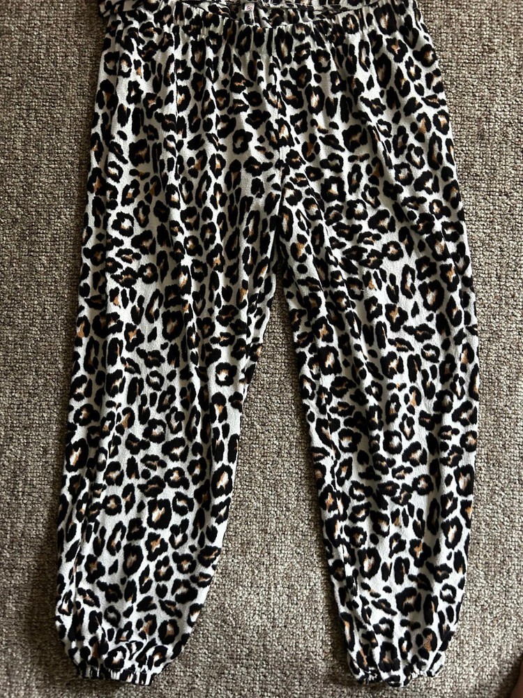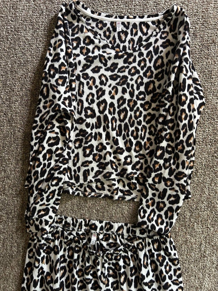 SO womens leopard print pajamas womens size 2XL. Super soft and comfy plus stylish! See other listings to bundle Elevate your loungewear collection with this chic Leopard Print Lounge Set from So Intimates. Made from soft, breathable fabric, this cozy outfit is perfect for relaxing at home or a casual outing. The set features a long-sleeve top with a stylish cropped design and comfortable pants with an elastic waistband, ensuring a perfect fit. Key highlights include: - Soft and breathable material - Eye-catching leopard print design - Comfortable elastic waistband on pants - Versatile styling for lounging or casual wear Stay stylish and comfortable with this delightful lounge set that combines fun designs with ultimate ease.