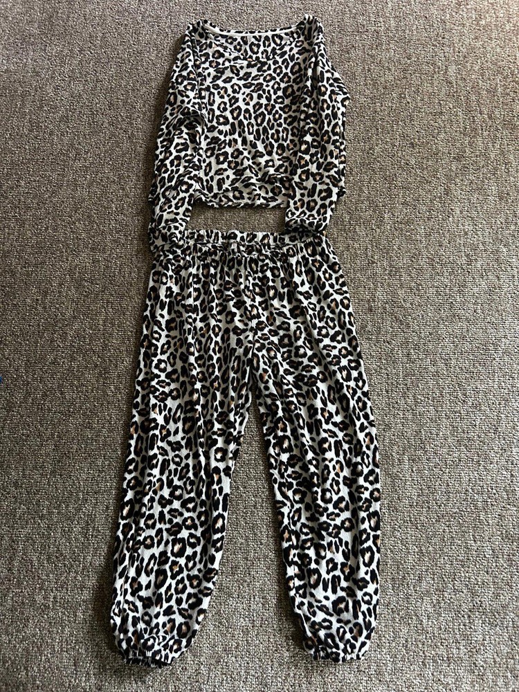 This leopard print lounge set is so soft and comfy—perfect for relaxing in style! The cropped top and elastic-waist pants fit great, and the material feels amazing. Love the bold print—it’s cozy yet fashionable. A must-have for loungewear lovers!