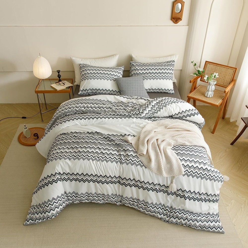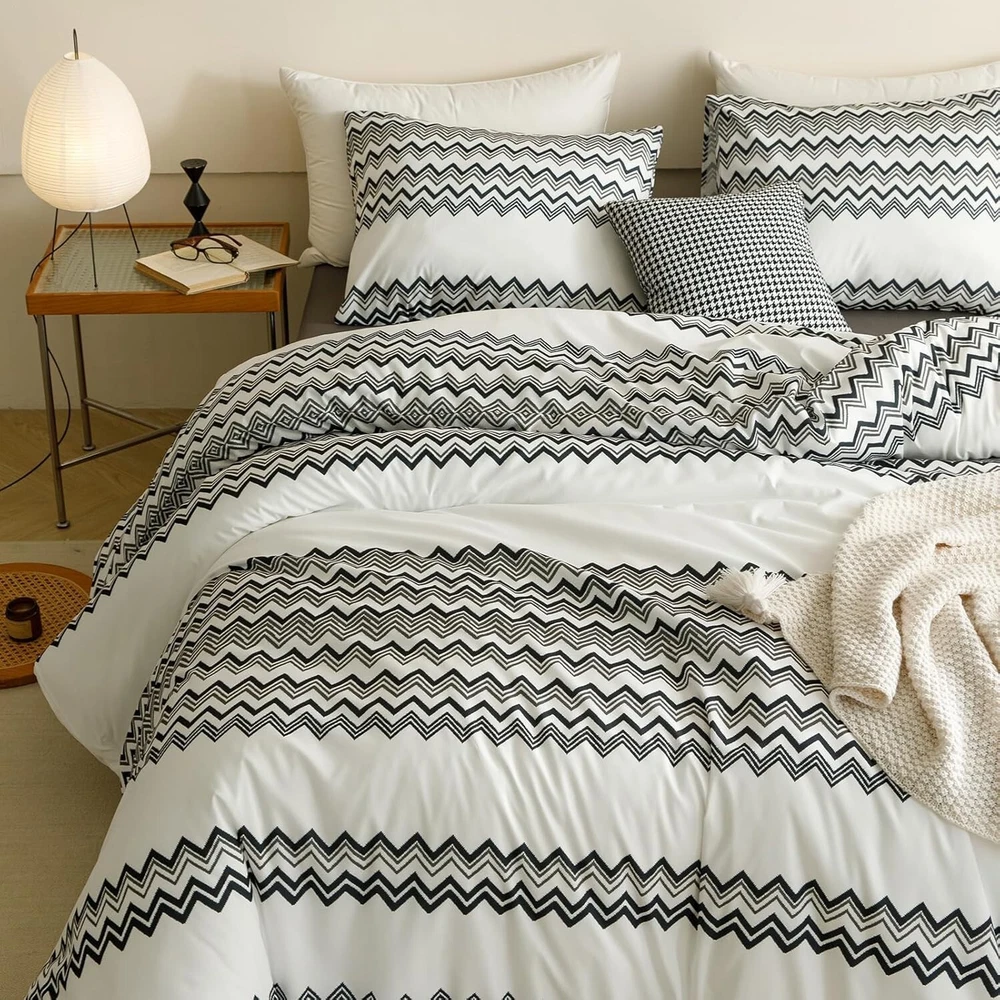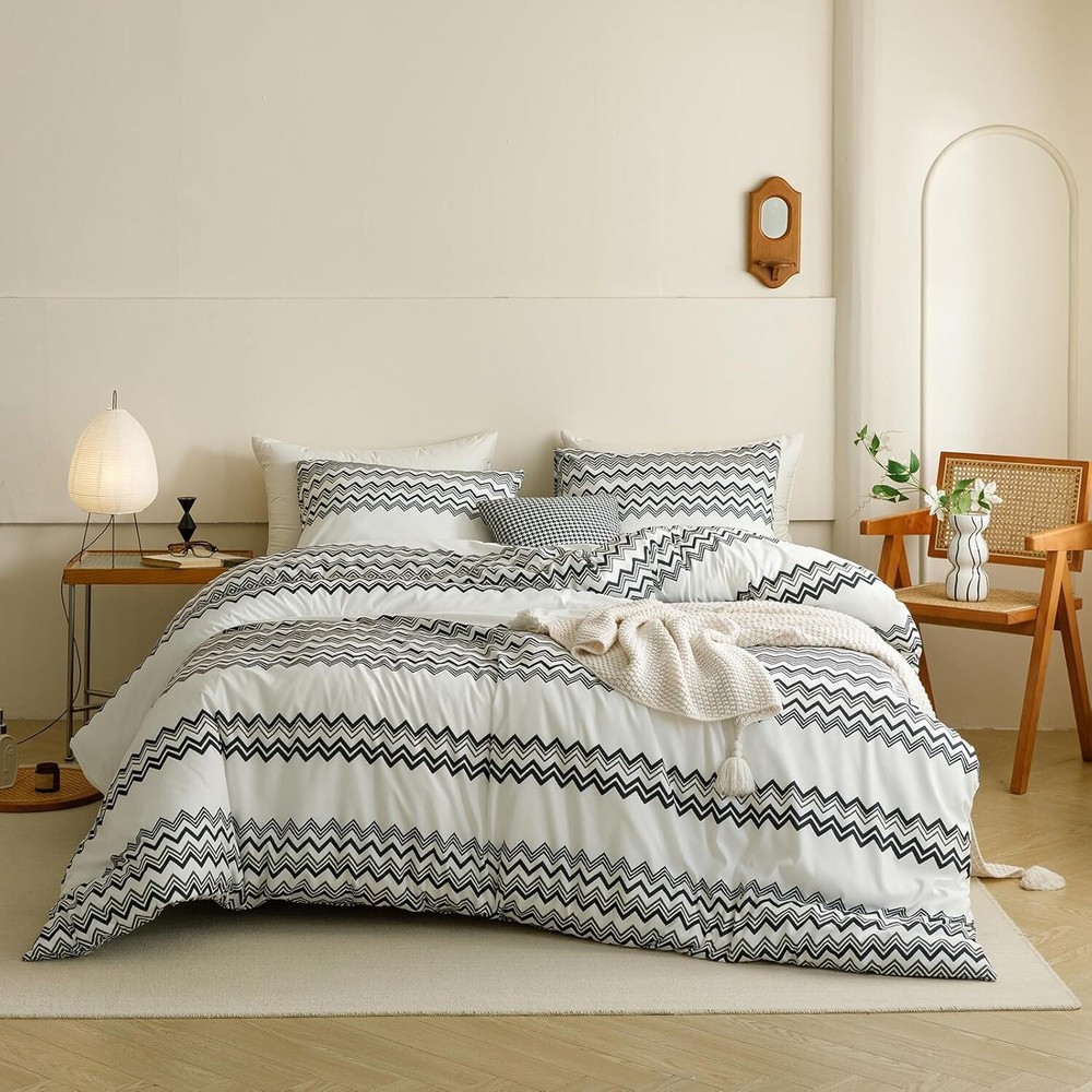 This comforter set is incredibly soft and cozy—perfect for a luxurious night’s sleep! The breathable fabric keeps me comfortable all night, and the black stripes add a sleek, modern touch to my bedroom. Love that it comes with matching pillowcases, and fluffing it in the sun really made a difference. Highly recommend for anyone wanting stylish, high-quality bedding!