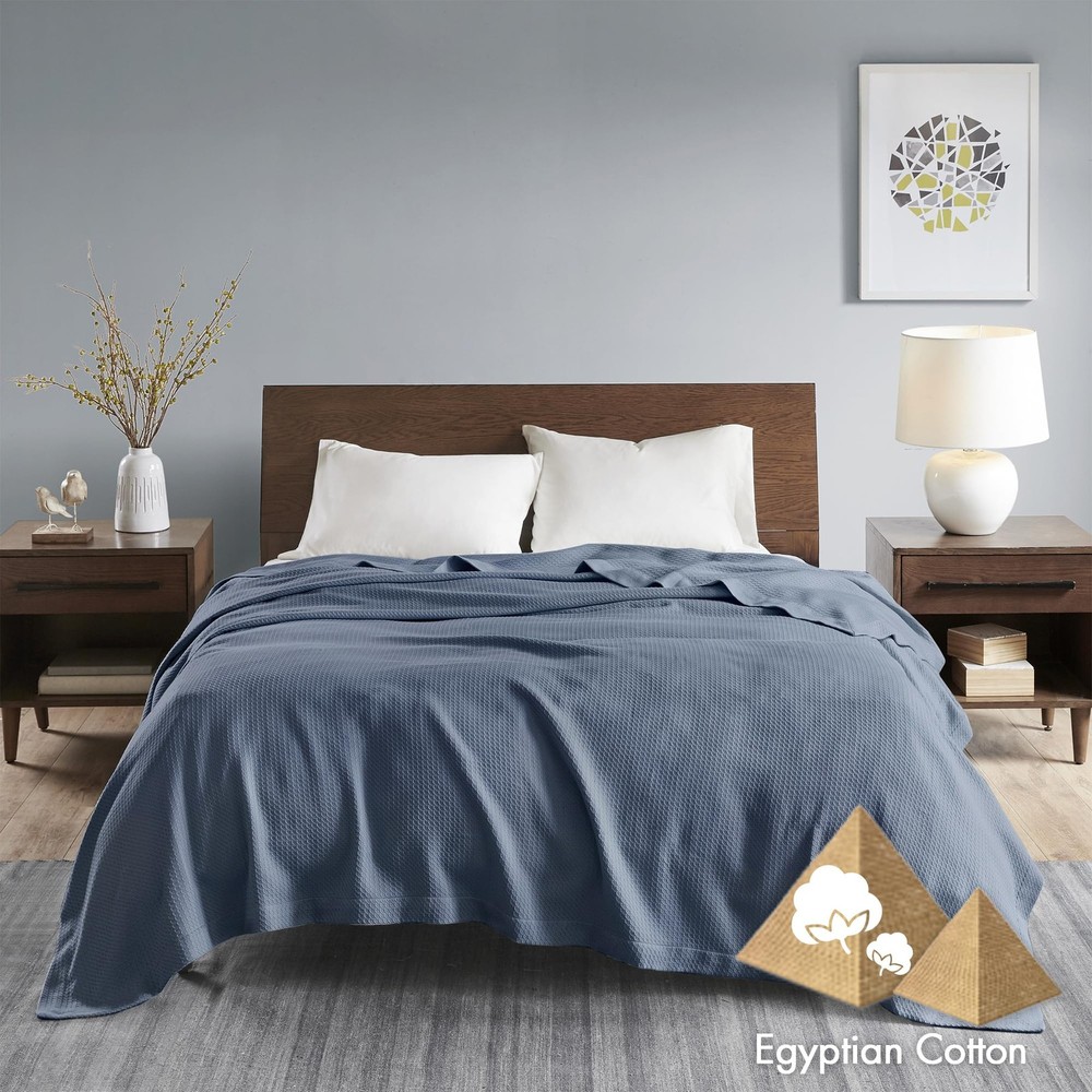 Immerse yourself in an exceptionally comfort of our 100% Certified Genuine Egyptian Cotton Bedding Blanket featuring super soft and breathable fabric for year round comfort Our premium quality Egyptian cotton blanket is tightly woven blanket to reduce piling and snagging for enhanced durability for the years to come Premium quality blanket Oeko-Tex Certified, includes no harmful substances or chemicals ensuring quality comfort and wellness 1 King Size Blanket: 108"W x 90"L For you convenicend it's machine wash cold, gently and separately. Do not bleach. Tumble dry low. Remove promptly
