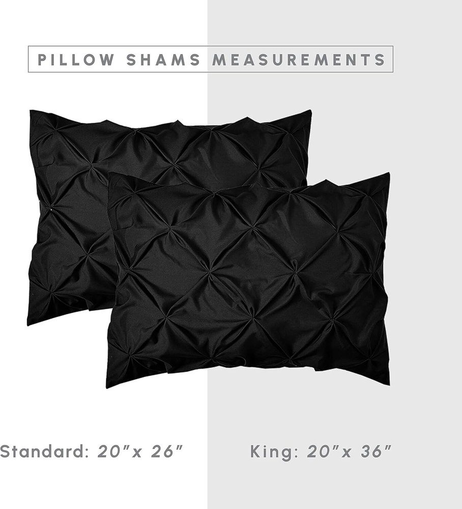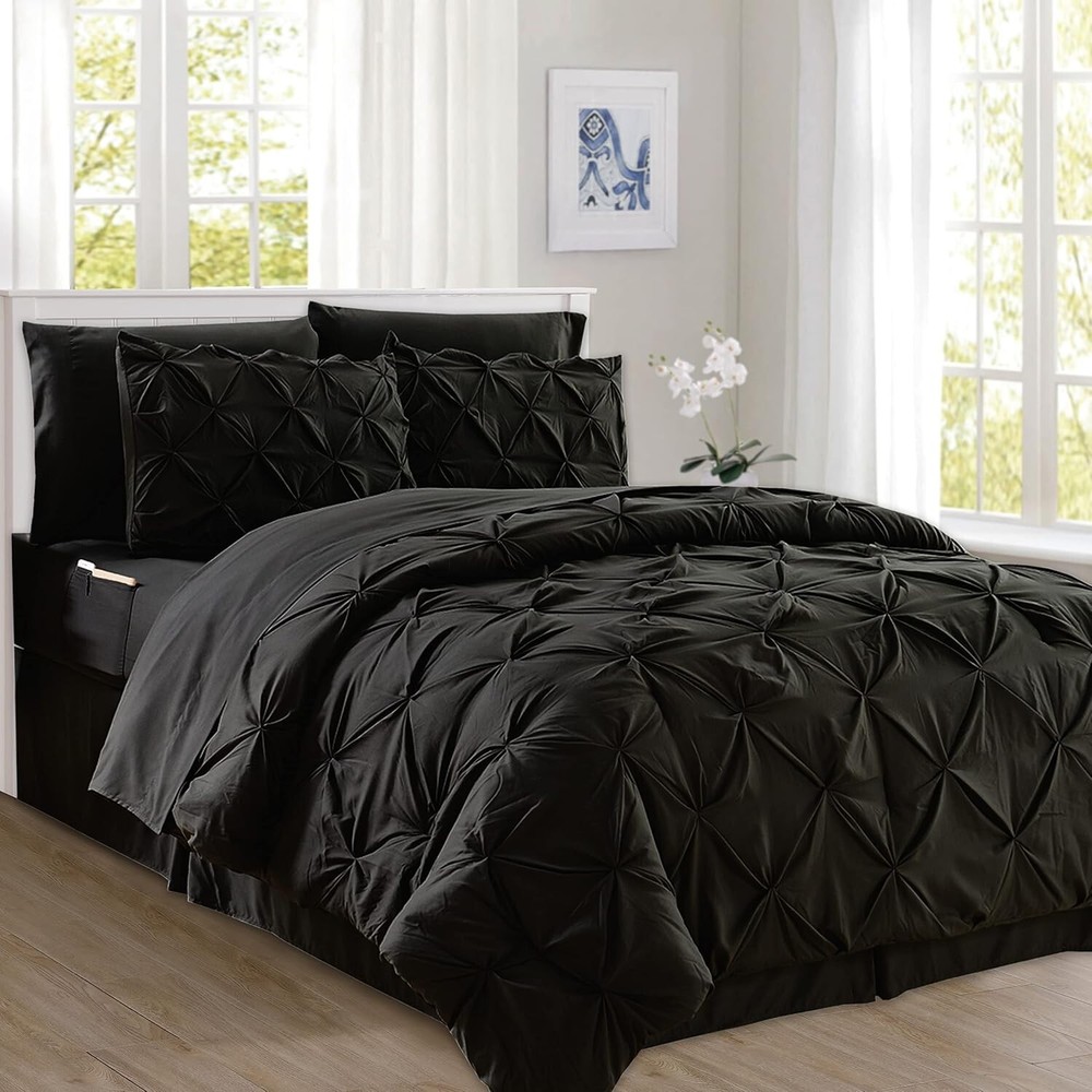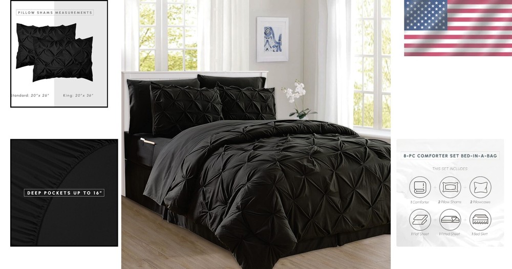 Soft & Cozy 8-Piece Microfiber Comforter Set with Smart Sheet Pockets - King ‹ › ‹ › ‹ › ‹ › ‹ › ‹ › ‹ › ‹ › ‹ › Soft & Cozy 8-Piece Microfiber Comforter Set with Smart Sheet Pockets - King Transform your bedroom into an inviting sanctuary with our luxurious 8-Piece Pinch Pleated Comforter Set. Meticulously crafted from high-quality microfiber, this set offers an unparalleled level of softness and durability that elevates your sleep experience. Components & Size: Comforter: 108" x 90" Bed Skirt: 78" x 80" + 14" drop Pillow Shams: 20" x 36" (2 included) Flat Sheet: 105" x 102" Fitted Sheet: 78" x 80" (fits mattresses up to 16 inches) Pillowcases: 20" x 40" (2 included) Smart Features: Fitted sheets equipped with double-sided storage pockets—perfect for storing glasses, remotes, phones, and more. Fully elasticized to ensure a snug, secure fit on your mattress. Care & Durability: OEKO-TEX 100 Standard certified—ensuring the absence of harmful substances and a commitment to environmentally responsible production. Shrink and wrinkle-resistant for long-lasting beauty, even after multiple washes. Meticulously crafted with firm stitching to prevent shifting and ensure even warmth. Easy to care for: machine wash cold with like colors; tumble dry low or air dry. Avoid bleach. Why Choose Our Comforter Set? Elevate your sleeping experience with our sophisticated pinch-pleated design that adds a touch of elegance to your decor. This comprehensive bedding set combines practicality with opulent comfort, creating a stunning focal point in your room. The deep-pocket sheets facilitate easy access to your essentials, while the bed skirt keeps your space looking neat and tidy. Your ultimate retreat awaits—upgrade your bedding with our 8-Piece Microfiber Comforter Set today and indulge in the elegance, comfort, and practicality it provides. Shipping Free & Fast Shipping - We offer free shipping to most of the USA with a normal delivery time of 3-7 days. However, due to the current situation, additional delivery time (up to 3 weeks) may be required for some items. Alternative Carriers - We may use alternative carriers (e.g. USPS, FedEx, UPS, etc.) to ensure your package arrives safely and on time. Due to the use of multiple carriers, we are unable to provide a tracking number automatically. Handling Time - Orders are processed and shipped within 1-2 business days of receiving cleared payment. Shipping Restrictions - Shipping to Alaska, Hawaii, Puerto Rico, Guam, and other US territories may incur shipping charges or delivery restrictions. Please contact us before ordering, or your order can be refunded/cancelled. State Restrictions - There may be restrictions based on your state of purchase. For example, certain items may not be shipped to California due to state regulations. Contact for Tracking Updates - If you require tracking updates or have any concerns about the delivery of your order, please feel free to contact us, and we will be happy to assist you. Return 30-Day Hassle-Free Returns - We want you to be completely satisfied with your purchase. If you are not, you can return the item within 30 days of receiving it for a full refund or exchange. Easy Return Process - To start a return, simply contact us and we will provide you with a prepaid return shipping label and detailed instructions. Restocking Fee - There are no restocking fees for returns. However, the buyer is responsible for return shipping costs if the return is not due to a seller's error. Refund Processing Time - Refunds will be processed within 5 business days of receiving the returned item in its condition. Payment We accept all major credit cards, PayPal, and Apple Pay for your convenience. Your payment information is secure and encrypted to ensure a safe and seamless transaction. Please complete your payment within 3 days of purchase to avoid any delays in shipping. Feedback Your feedback is extremely important to us. We strive to provide the best products and customer service possible. If you are satisfied with your purchase, please take a moment to leave us a positive review. If you have any concerns or issues with your order, please contact us before leaving negative feedback. We are committed to resolving any problems and ensuring your satisfaction. Contact Us If you have any questions or concerns, please feel free to out to our customer support team. You can contact us through the eBay messaging system. We are available Monday to Friday, 9:00 am to 5:00 pm EST, and we will do our best to respond to your inquiry within 24 hours. Buy it now and enjoy a pleasant shopping experience! Set Includes: Bed Skirt,Comforter,Fitted Sheet,Flat Sheet,Pillowcase,Pillow Sham Material: Microfiber Features: Breathable,Hypoallergenic,Lightweight,Wrinkle Resistant,Easy Care,Machine Washable Care Instructions: Do Not Bleach,Machine Wash,Machine Wash Cold,Tumble Dry Low Department: Teens,Adults Room: Bedroom,Dorm Room Size: King Type: Comforter Set Color: Black Fill Material: Polyester Pattern: Pintuck Insulation: All Seasons Number of Items in Set: 8 Style: Elegant Season: All Closure Type: No Closure Thread Count: 150 GSM (Grams per Square Meter): Not Specified