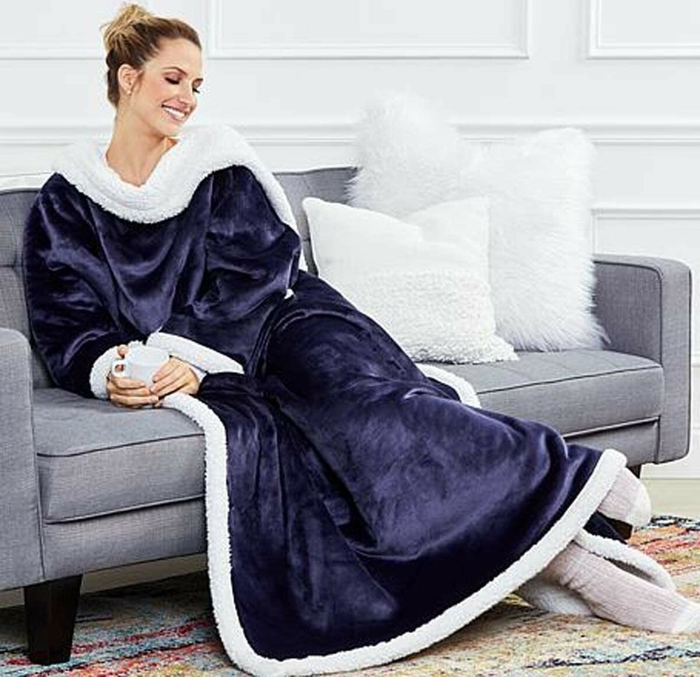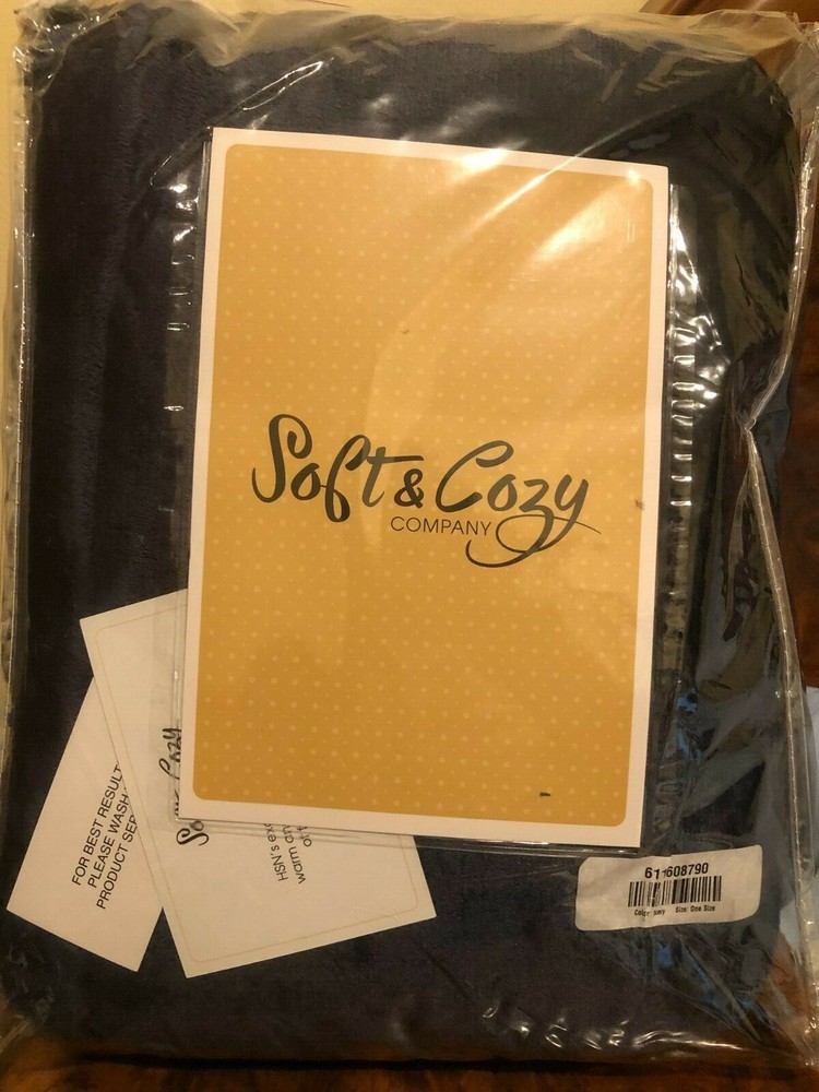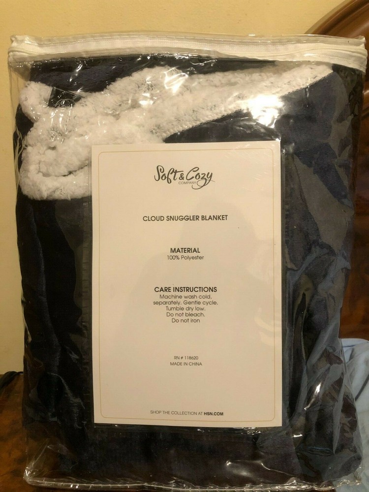 Soft & Cozy Cloud Snuggler Blanket NAVY Sherpa-Lined 611608790 - BRAND NEW IN ORGINAL PACKAGING with tags. Never been used and never been taken out of packaging. Smoke-free home. Cuddle up with a cloud, and still accomplish the things that need doing thanks to the attached sleeves. This snuggler is as cozy in the office as it is at home. Unisex and one size fits most. Makes a great gift for anyone! Can wear with the opening in the front or the back. Has a kangaroo pocket for your hands and items! HSN video on the Soft & Cozy Cloud Snuggler Blanket: https://www.youtube.com/watch?v=nUhcN7fkOiM