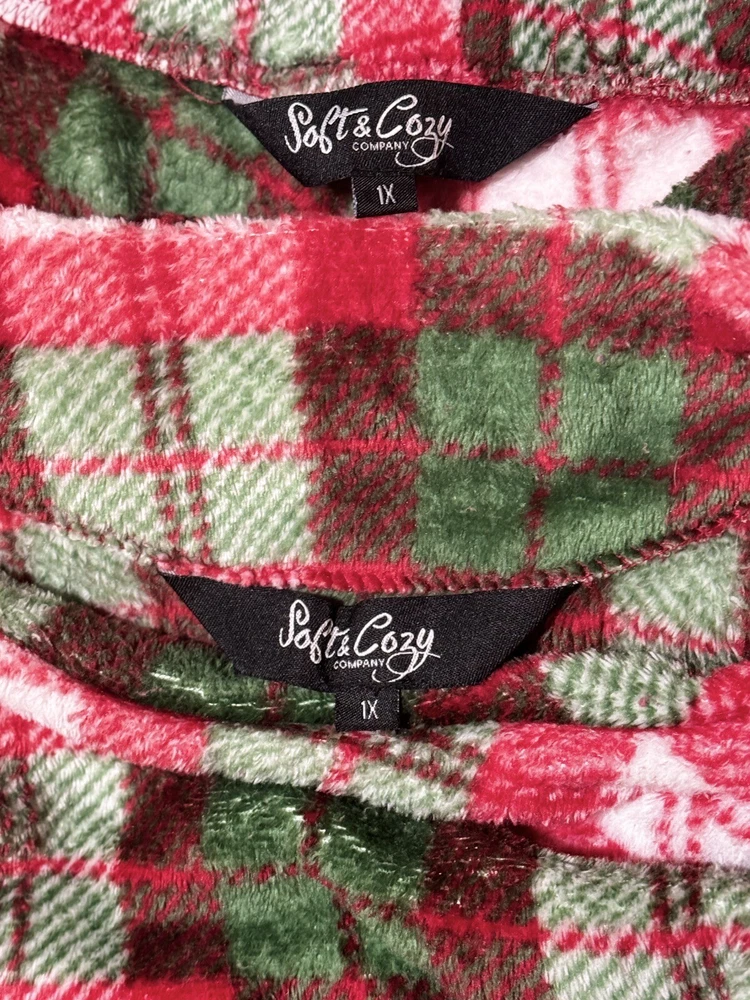Get cozy this holiday season with these festive multicolored plaid pajamas from Soft & Cozy Co. The pajama set includes a long-sleeve top with a round neckline and elastic closure, as well as comfortable drawstring pants made from 100% polyester fleece. This pajama set is perfect for winter and fall, and features a Christmas and holiday theme with colorful accents and a classic design. The Soft & Cozy Co. pajamas come in size 1X and are machine washable for easy care. These pajamas are not only comfortable but also stylish, with a fun flamingo character family accent and a product line that lives up to its name. Ideal for plus size women, this pajama set is a great addition to any sleepwear collection. Pre-Owned Condition! Please view all Pictures- they are an important part of the description of the item and if you have any questions - send a message before bidding and I will get back to you as soon as possible. Payment ~ Please submit payment within 48 hours of auction end. If you need more time to pay, please let me know in advance. After 4 days with no payment and no communication, I will cancel the order. If you are bidding on more than one item and want to combine shipping, please let me know so I can put a hold for p ayment. Thank you for viewing this item and HAPPY BIDDING! Shipping~ Item will ship within 2 business days of payment, excluding weekends & holidays- Usually Faster! I typically take items to the post office daily- If you have any questions please e-mail me. I can combine Shipping & Handling on multiple auction winnings in most cases- IF you let me know ahead of time. Any items already paid for will not qualify for combined shipping. Returns~ I am happy to accept returns. Please contact me within 3 days of receipt and return the item within 10 days of receipt. Original shipping and handling fees are non-refundable. Item must be in Original, Unworn, Unwashed, Unaltered condition. - Buyer pays for Return Shipping. -Returns are for U.S. Customers only, All International Sales are Final. If you have any questions please ask before bidding. I am happy to send more pictures and answer your questions. Be sure to check out my other listings! I recently retired and have a lot of items to list and will be adding new ones weekly so add me to your favorites! Please bid with confidence as I strive to sell quality merchandise. Thanks and have a great day!!