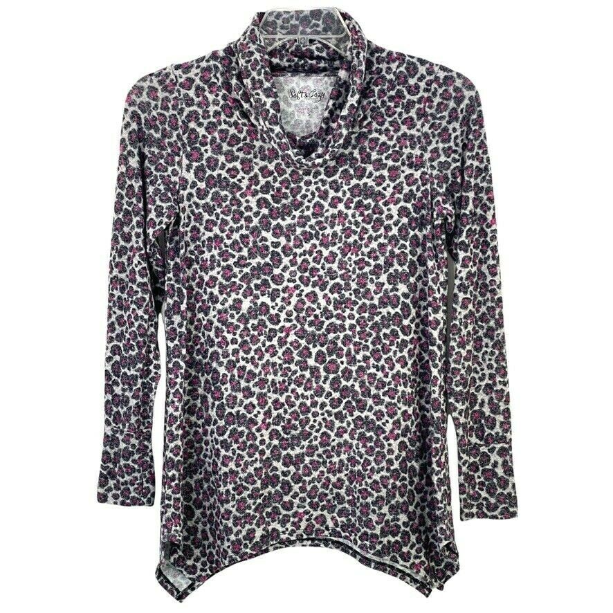 Soft & Cozy Company Top Cowl Neck Long Sleeve Leopard Print Size S Very good condition Soft & Cozy Company Top / Lounge top Leopard print Long Sleeves Cowl Neck Shark bite hem Very soft Stretch Rayon/Polyester/Spandex Cozy, Lounge, Warm, Winter, Comfort, Sleeping Color may vary slightly due to lighting and computer monitors. Very nice. No known rips, tears, or stains. Size small Please see pictures for measurements to see if this is a fit for you.