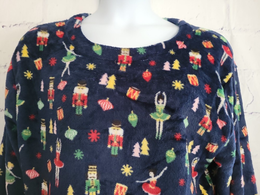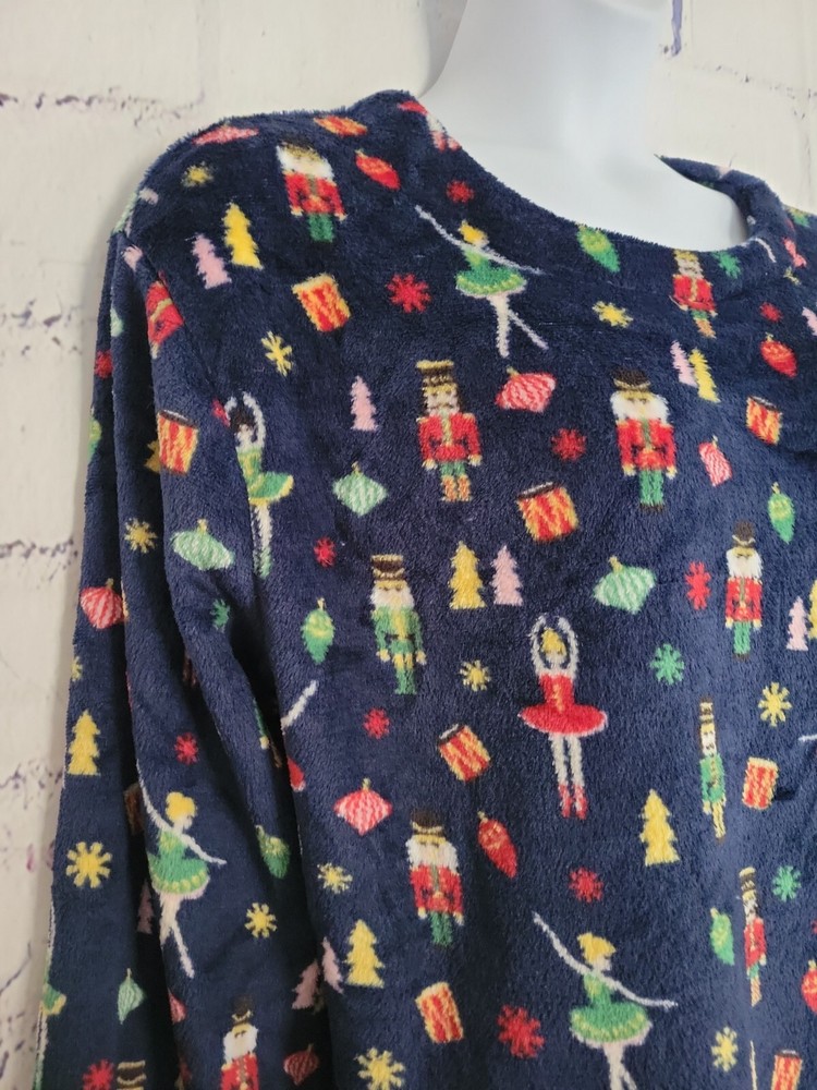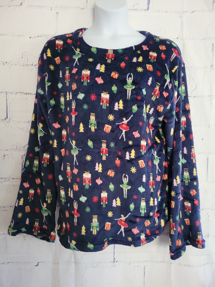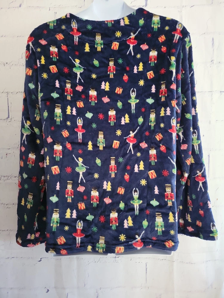 Soft & Cozy Company Holiday Pullover Fleece Top Christmas Nutcracker Theme size Large 100% Polyester Bell Long Sleeve Round Neckline Straight Hem with side vents Measurements: Armpit to Armpit (front only) - 26" Length (top back collar center down to hem) - 28" Sleeve Length (neckline across shoulder to end) - 33" Waist Circumference (laying flat) - 48" Hip Circumference - 48" New Without Tags Condition CL 20