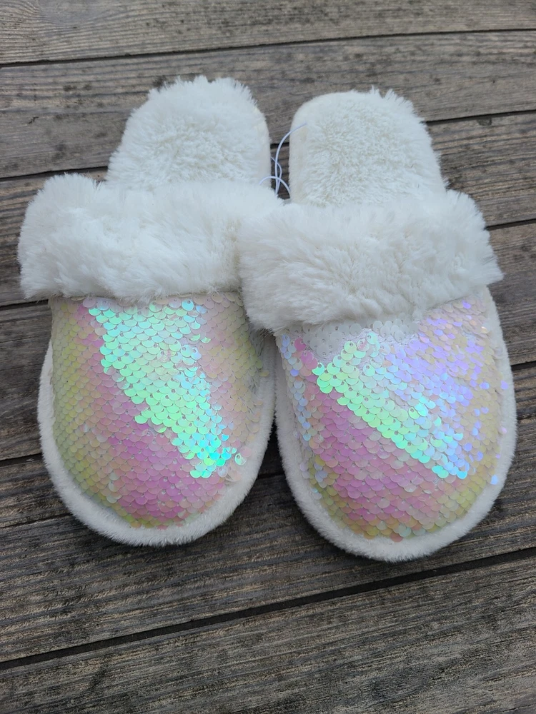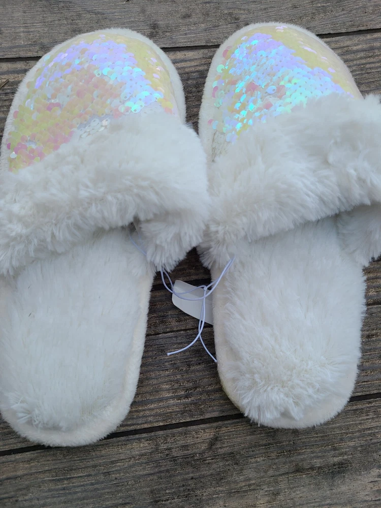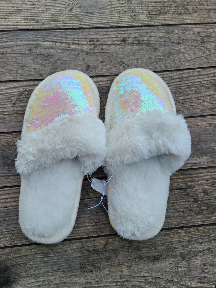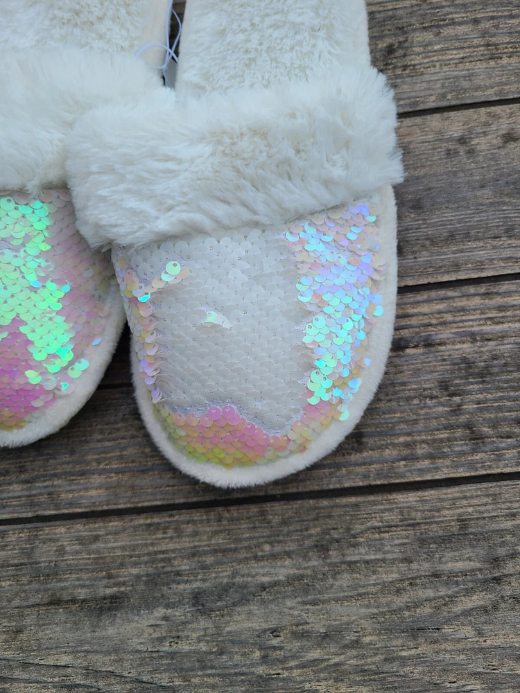 Soft & Cozy Faux Fur Sequin Slipper White size XS 5/6....
