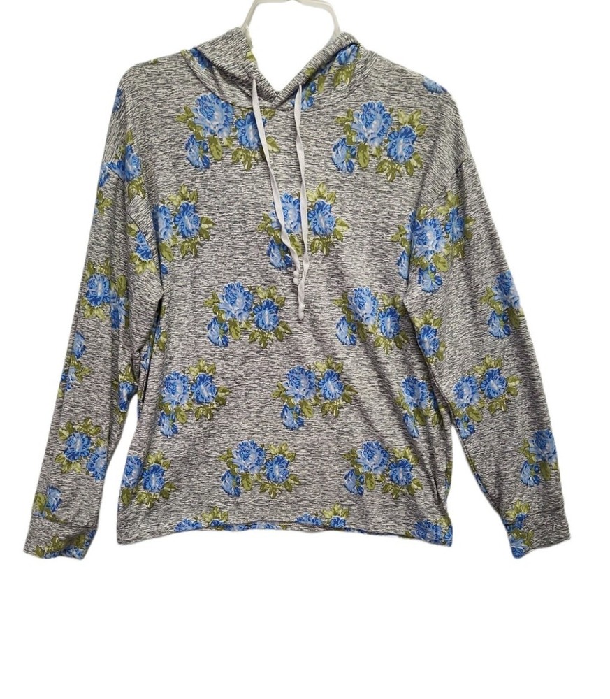 Soft & Cozy Lifestyles By Poof Women's L Blue Floral Pullover Hoodie. Armpit to Armpit 22" Approximately Length 25" Approximately 6-0510