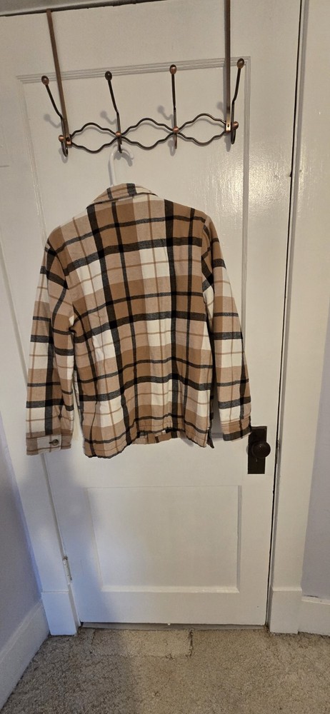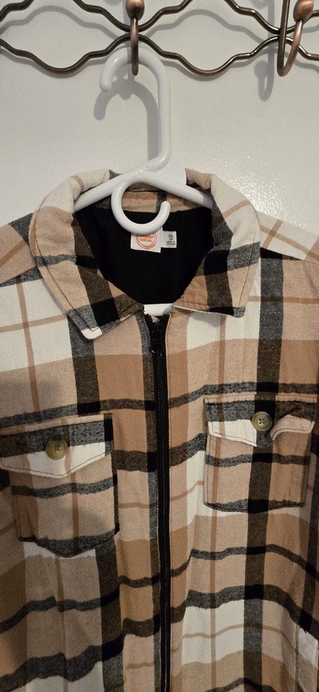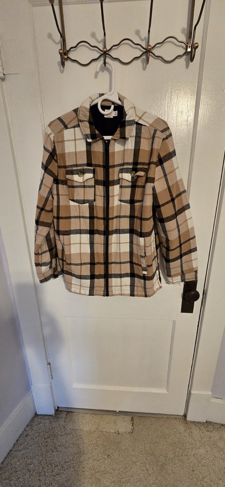 This Soft Cozy Shacket is the perfect addition to your fall wardrobe. Made with a polyester outer shell and flannel fabric type, this mid-length jacket features a plaid pattern in multicolor. The jacket has long sleeves with a zip closure and pockets for convenience. It is a juniors' size L and has a basic jacket style with a classic outdoor theme. The insulation material is polyester, making it a great choice for casual occasions. This jacket is not vintage and is suitable for women's department. Get ready for the fall season with this comfortable and stylish jacket.