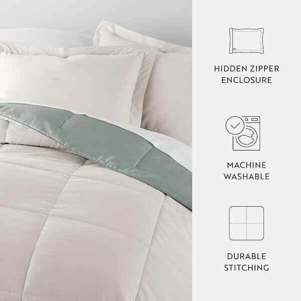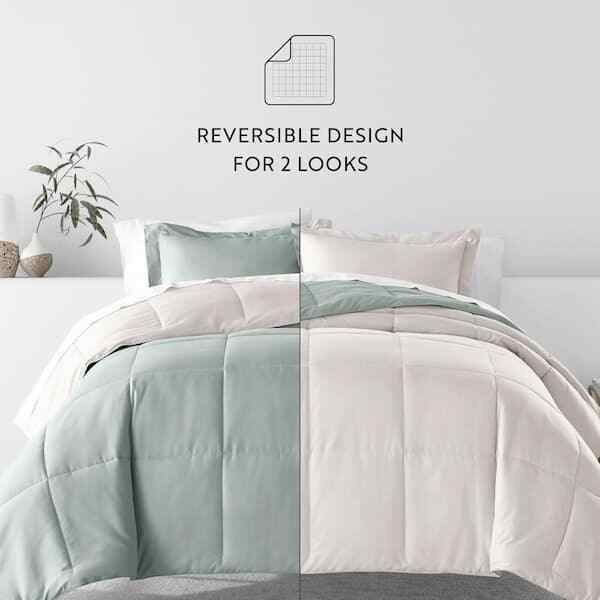 Give your bedding a brand new look and feel with this all season reversible down alternative comforter set. Presenting a quality alternative to down, it's incredible loft and down like feel makes it the perfect comforter to keep you cozy all year round. The end to end baffle box construction helps to eliminate the need for regular fluffing by preventing the fibers from shifting. Featuring a reversible design of aesthetically matched colors, this set is ideal for making quick style changes to your sleep space.